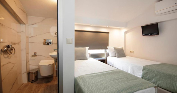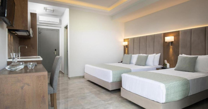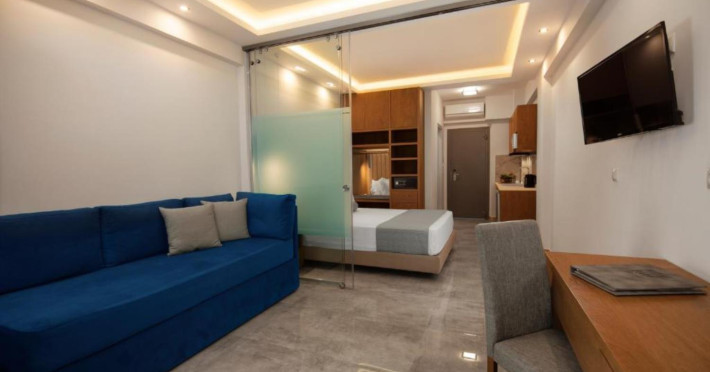 The 4-you Family 2 offers spacious modern decorated units with air conditioning, a flat-screen TV and fridge. Plenty of discreet pastel colors of the color palette are found in each of the 20 rooms. . Each unit has a fully equipped kitchen with electric stove with 2 ceramic hobs and a microwave, coffee maker, hairdryer, toiletries, towels and bathrobes that turn the experience of a unique luxury. A free safe and Wi-Fi are also included.