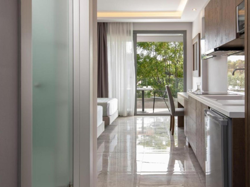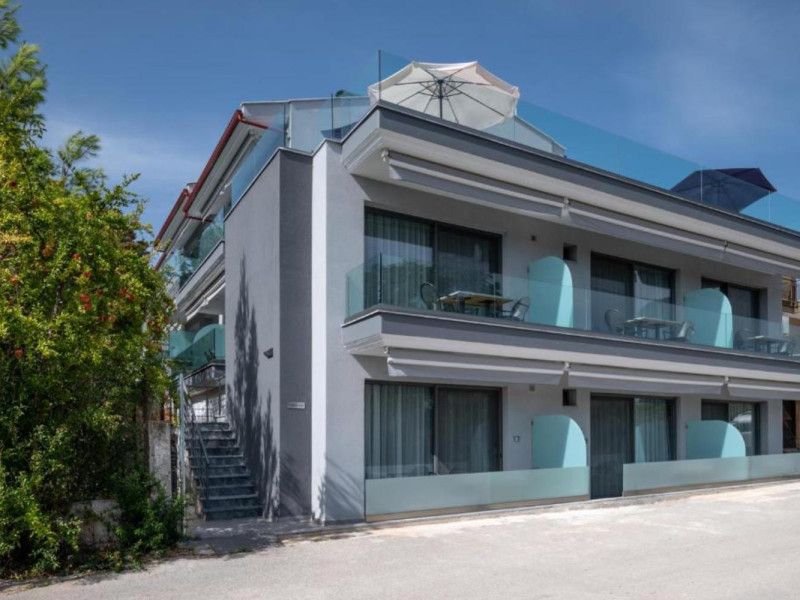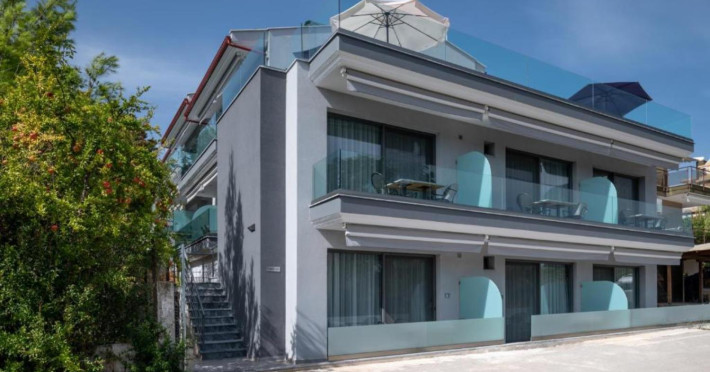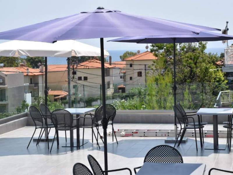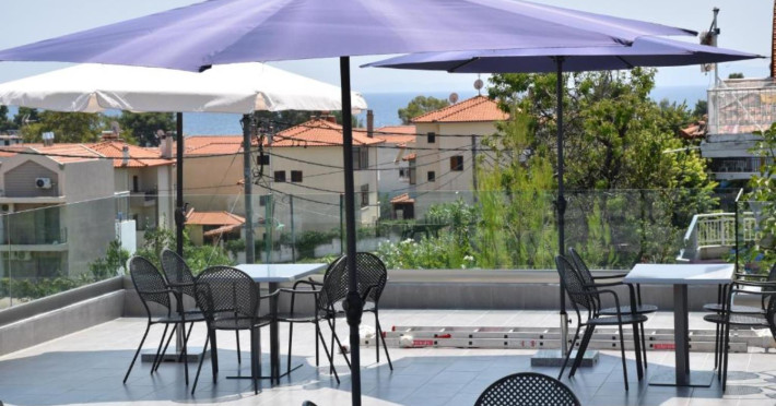 Situat in minunata statiune Metamorfosi foarte aproape de plaja (350 m), la o distanta de aproximativ 60 de kilometri de aeroportul "Makedonia" din Salonic si 34 de kilometri fata de portul Ouranopolis.