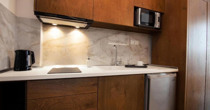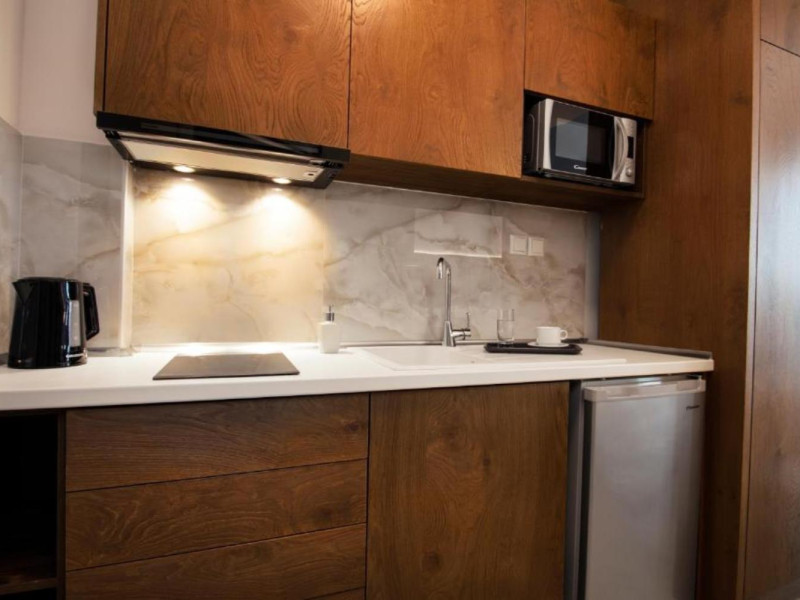 Televizor, balcon, frigider, cuptor, plita, fierbator de apa si aparat de cafea.