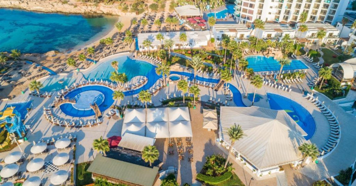 Situated on the sandy beaches of Nissi Bay in Ayia Napa, Adams Beach Hotel & Spa offers panoramic views of the Mediterranean Sea. Facilities include several outdoor pools, a tennis court, and a spa.