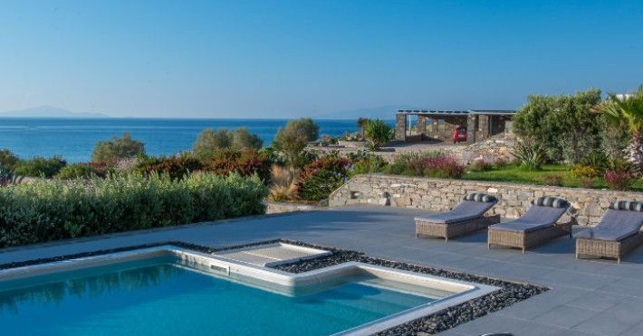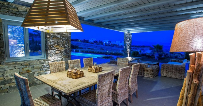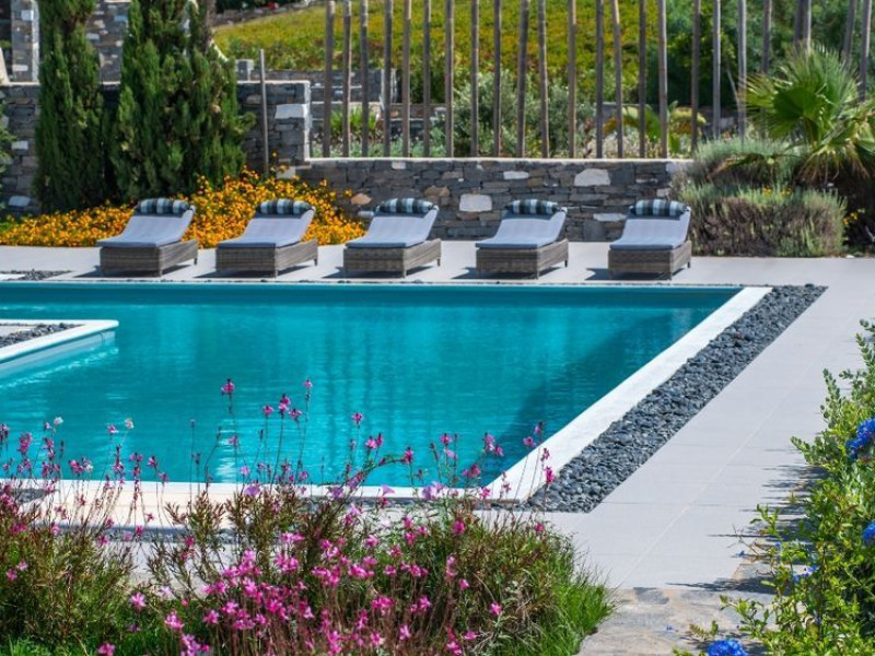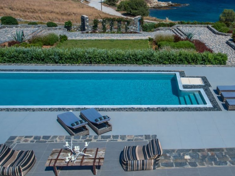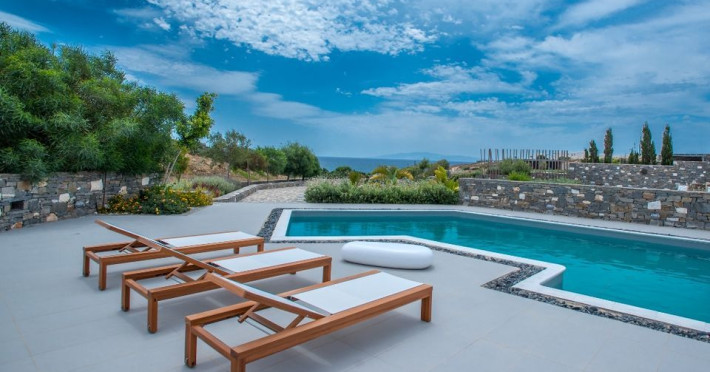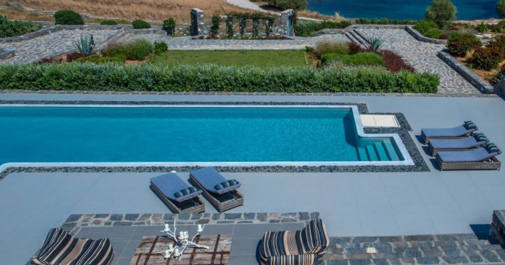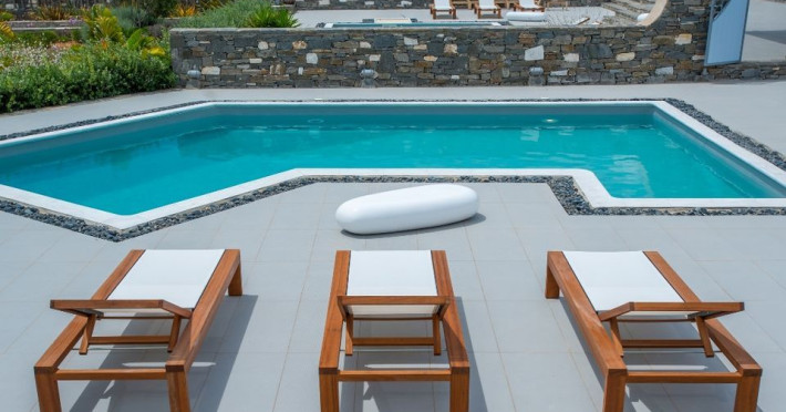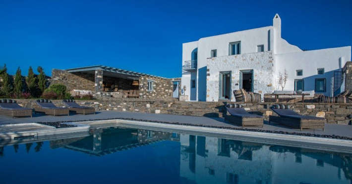 Paros Luxury Villas is a group of four private rental villas, located at the east side of Paros, a few minutes walk from the beautiful sandy beach of Golden Beach. Built on 11.500 square meters ground, the 4 building compound surrounds three large swimming pools. Designed and built following the Cycladic architecture the villas blend harmonically with the natural environment.The perfect destination with seductive view of Cycladic landscape and the beauty of the Aegean Sea. An oasis of peace and luxury just a breath away from the cosmopolitan pulse of Dryos. A refuge where design and relaxation are wonderfully combined, Aelia Paros Villas, is the perfect choice for families and group of couples.