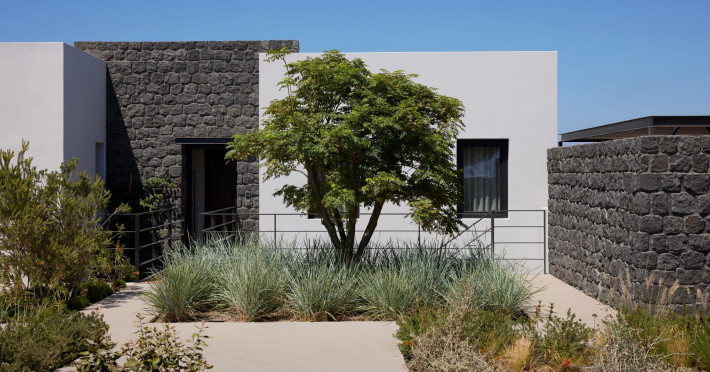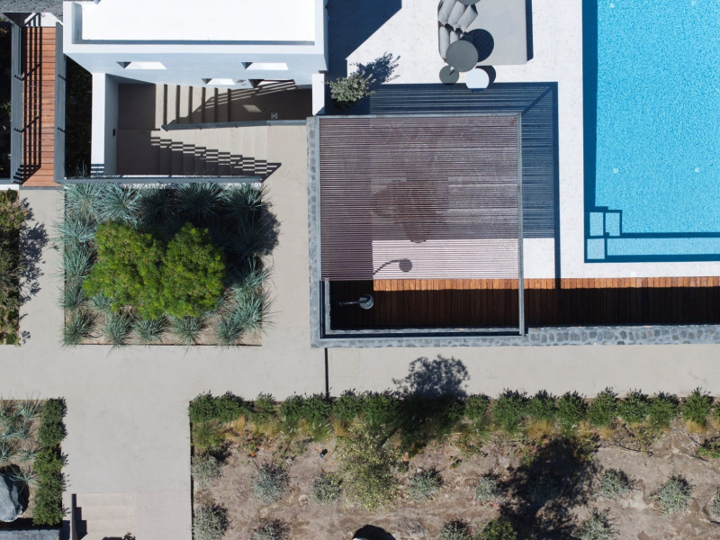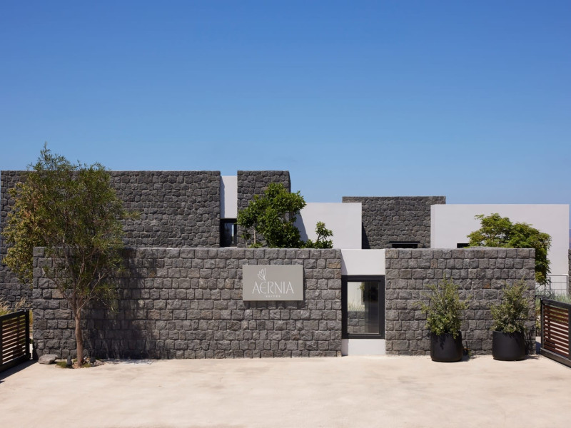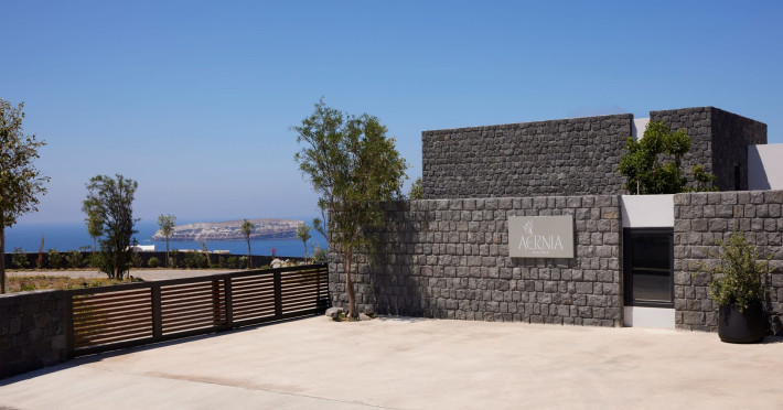 Ideally situated in serene Akrotiri, close to the homonymous archaeological site and the breathtaking Red Beach, with panoramic views of the imposing volcanic crater and the renowned Caldera, the brand-new Aernia Suites & Art epitomizes refined luxury, minimalism, and elegance.Tastefully decorated with natural materials and authentic works of art by well-known Greek and foreign artists, the 2 independent suites and 1 villa of Aernia Suites & Art allow you to experience the plethora of sensations that every journey to enchanting Santorini invariably evokes.Choose the one that best suits your preferences and grant yourself and your loved ones the opportunity to feel the existential bliss evoked by the unobstructed view of the azure waters of the Aegean.Every evening, you will have the chance to witness all together the most celebrated sunset on the planet, an experience of a lifetime that will forever be inscribed in your heart.