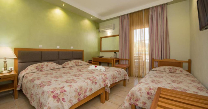 Camerele sunt dotate cu balcon, aer condiționat (contra-cost), telefon, televiziune prin satelit, frigider, internet wireless, baie cu dus, uscator de par, baby cot (la cerere). Toate camerele din hotel sunt duble, pentru camere triple se adauga un pat pliant.