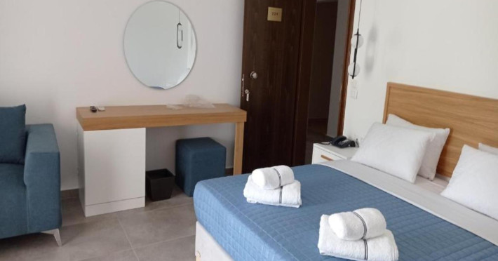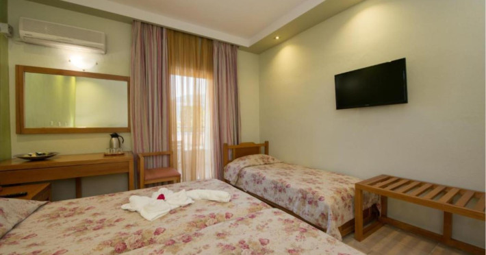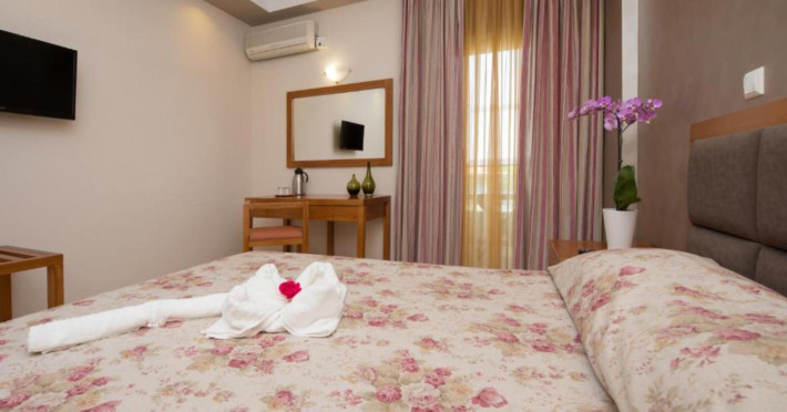 Aethria hotel has taken its name from the ancient name of thassos. It means "island with wonderful weather and healthy climate" both of which still exist. Our hotel is located in the town of thassos, limenas, built in a garden of total area 12,000sq. meters, including a children's playground, tennis court, parking area, swimming-pool and pool bar where you can enjoy the sun sipping exotic cocktails.