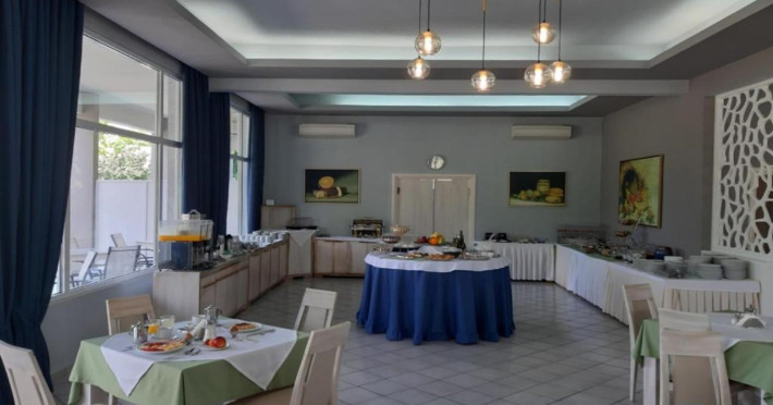 Hotelul dispune de restaurant pentru micul dejun, bar, seif (contra-cost), piscina, sezlonguri și umbrele, grădină, tenis de camp (contra-cost), loc de joaca, parcare.