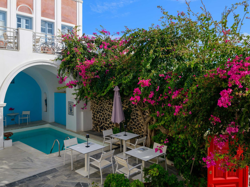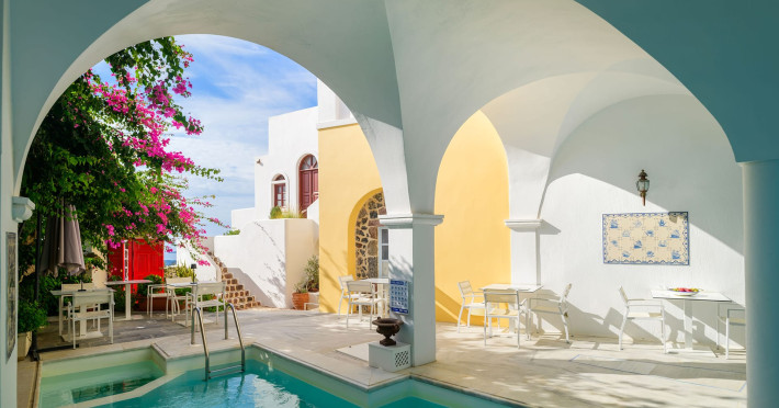 The Aigialos Luxury Traditional Settlement consists of fifteen renovated neoclassical houses that were originally the fine homes of the island's noble captain families. The architecture and design of the houses bring to life the traditional way of life of the island's nobility. Situated on the rim of the caldera, sheer cliffs that rise from the sea, the hotel overlooks the island's famed volcano. It is located on the quiet side of the town of Fira but only a 3-minute walk to the bustling center where all the shops, restaurants, and museums are. FREQUENTLY ASKED QUESTIONS - FAQQ: What is the best way to make a reservation?A: You can reserve directly and securely on our website or via trusted booking platforms. Booking direct often allows for special offers and better flexibility. You can always ask to us to match a better rate found on another website.Q: What is your cancellation policy?A: The cancellation terms depend on the rate you select. For fully refundable rates the cancellation deadline is specified at booking; please review the terms of your chosen rate.Q: Can I request a particular residence or room type?A: Yes — during booking you may select your preferred category (e.g., Volcano view suite, Superior residence) and even request us to assign a specific room within that category, if so desired. We will try to accommodate your preference subject to availability.Q: What time is check-in?A: Check-in begins at 15:00.Q: What time is check-out?A: Check-out is at 11:00.Q: Is late check-out or early check-in possible?A: We will do our best to accommodate requests for early arrival or late departure, subject to availability and may incur an additional charge. If you provide us with your arrival time in advance, we will do our best to prioritize housekeeping tasks to match these requests.Q: Where is the hotel located?A: Aigialos is situated in Fira, Santorini, perched on the Caldera rim. We are located very close to the town center and only 100 meters from the transfer drop off point.Q: How far is the airport or ferry terminal?A: From Santorini (Thira) Airport (JTR) it’s approximately a 13-minute drive (5,6 km). From the port, it is a 17-minute drive (7,5km). Please contact us in advance to help with your transfer arrangements. Q: Is parking available?A: There is no on-site parking as the hotel is located on the caldera cliff. Free off-site parking is available nearby (150 meters and 300 meters). Please note that parking spaces are limited, especially during peak season.Q: Is it advisable to rent a car while visiting Santorini?A: It really depends on the season. During the early and late summer periods, having a rental car available can be great fun as it provides the freedom in moving around between beaches, cultural sites, villages, and wineries. Renting from a trustworthy agency and one that is close by the hotel are important.Q: What is the character of the suites/residences?A: The hotel is composed of 18th- and 19th-century neoclassical houses, restored into luxurious residences with traditional architecture, marble floors, antiques, and modern amenities.Q: Do all rooms have Caldera or sea-view?A: All the residences and suites offer balconies or terraces overlooking the Caldera and Aegean Sea. Most of the rooms offer a volcano and/or sunset view as well.Q: Do all rooms have private balconies?A: The majority of the residences and suites offer private balconies or terraces. Only the Superior Residences and the Authentic Santorinia Residences offer a shared terrace.Q: Are connecting or family rooms available?A: The hotel has one family room, the Mansion Sunset View, which offers two bedrooms and two bathrooms, a large living area and a spacious private terrace with stunning views. Certain other room categories, like the Authentic Santorinia Residence also offer accommodation for extra persons on traditional sofas that are turned into sofa beds for the night.Q: Is there a swimming pool?A: Yes, a small outdoor plunge pool is available by the restaurant area close to the reception. One can enjoy a refreshing drink from the bar as well.Q: Do you have a restaurant and breakfast service?A: Yes — we provide a la carte breakfast and have a restaurant offering Mediterranean cuisine. Guests often highlight the breakfast service from their balcony.Q: Is room service available?A: Yes — room service is available during restaurant operating hours. Outside of those hours, the receptionist on duty would be able to offer drinks and beverages.Q: Do you have spa / wellness facilities?A: While Aigialos is primarily a luxury boutique residence rather than a full-scale spa resort, spa treatments can be arranged on request either with a in room therapy or to a close by spa.Q: Is WiFi included?A: Yes — complimentary WiFi is available throughout the property.Q: Is the hotel suitable for children?A: The hotel’s nature, steep paths and historic architecture mean it may be less suited for families with very young children or infants. For this reason, we accept children over the age of 6. Please contact us to discuss suitability for your family’s specific needs. Guest reviews mention steep steps and caution for younger children.Q: Are extra beds or cots available?A: Extra beds may be provided in selected room types on request. Please contact us ahead of your stay for arrangements. Baby cots are not available as we accept children over the age of six.Q: Are pets permitted?A: No – the hotel does not allow pets.Q: Are there elevators? Are rooms suitable for guests with mobility issues?A: Due to the historic nature and cliffside location of the property, there are numerous steps and no elevator access. Guests with mobility concerns should contact us ahead of time so we can discuss the most appropriate residence.Q: Is the path to the hotel steep or challenging?A: Compared to other cliffside properties, the Aigialos Hotel has very easy access, with a limited number of steps to reach it from the transfer dr