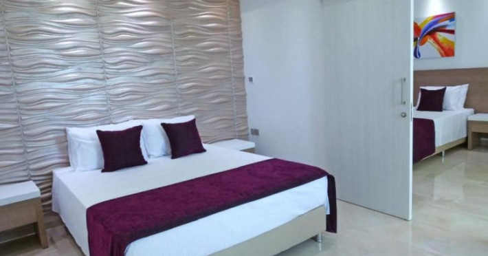 Camera de familie superioara cu vedere la mare (2 aduli + 2 copii)-(25 mp)-Aceasta camera are balcon cu vedere la piscina i la mare i ofera: