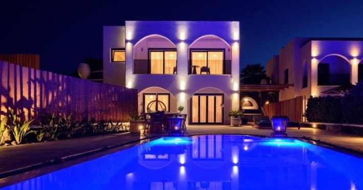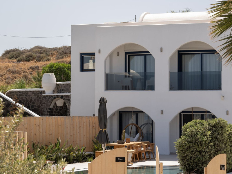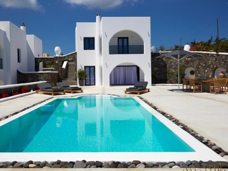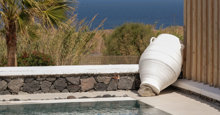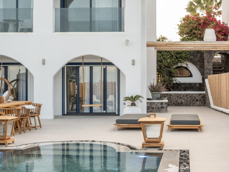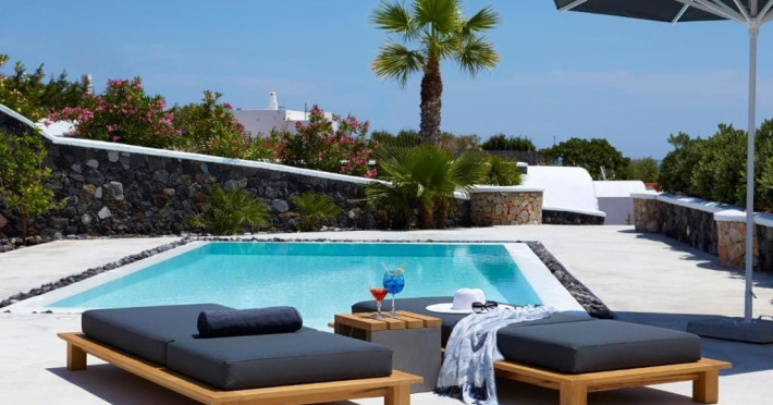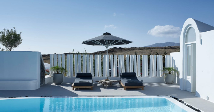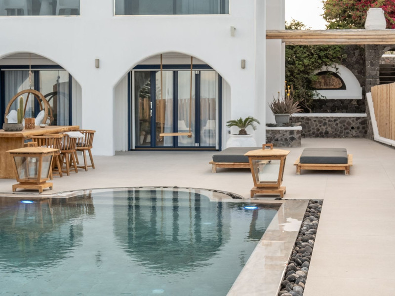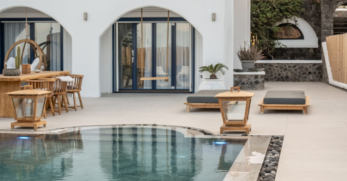 Write your story in Santorini at Amor Hideaway Villas, a brand new 5 villas luxurious complex in a secluded spot of Santorini near the capital of the island, Fira. Fusing modern amenities with the Aegean and Cycladic architecture and stylish decorative details, Amor Hideaway Villas will become a beautiful and relaxing shelter for your holidays in Santorini. Romantic for couples, cosy and comfortable for families and entertaining for friends, these brand new villas are the best accommodation choice for guests who are after a complete and memorable stay on the unique island of Santorini.
