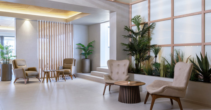 The Hotel is consisted of 160 rooms which are allocated in 10 various buildings scattered in an enchanting garden.