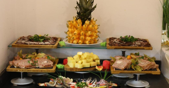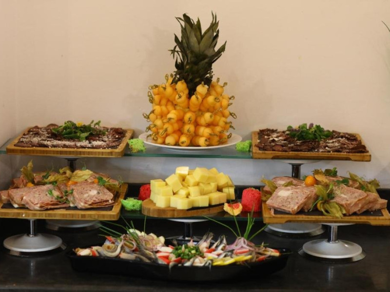 - Mic dejun tip bufet : / 07:30 - 10:00 / in restaurantul principal - diverse fructe si legume proaspete, branzeturi, fulgi de porumb, cornuri, clatite, oua, bauturi reci si calde. - Pranz tip bufet: / 12:00 - 14:00 / in restaurantul principal - o varietate de preparate calde si reci, produse lactate, fructe de sezon, o selectie bogata de preparate din bucataria bulgareasca si internationala, cu bauturi incluse de la aparat - apa, suc, bere si vin la halba, cafea, ceai. - Cina tip bufet: / 18:00 - 21:00 / in restaurantul principal - o varietate de preparate calde si reci, produse lactate, fructe de sezon, o selectie bogata de preparate din bucataria bulgareasca si internationala, cu bauturi incluse de la aparat - apa, suc, bere si vin la halba, cafea, ceai. Restaurant cu gustari cu o terasa mare insorita: - Mic dejun tarziu: 10:00 - 11:00 - Gustari de dupa-amiaza: 15:00 - 17:00 - Inghetata: 14:00 - 16:00 - Lobby Bar: / 10:00 - 23:00 / - bauturi alcoolice si nealcoolice locale, cafea, cappuccino, ceai si cocktailuri. - Bar la piscina: / 10:00 - 18:00 / (iunie - septembrie) - bauturi alcoolice si nealcoolice locale, cafea, cappuccino, ceai si cocktailuri.