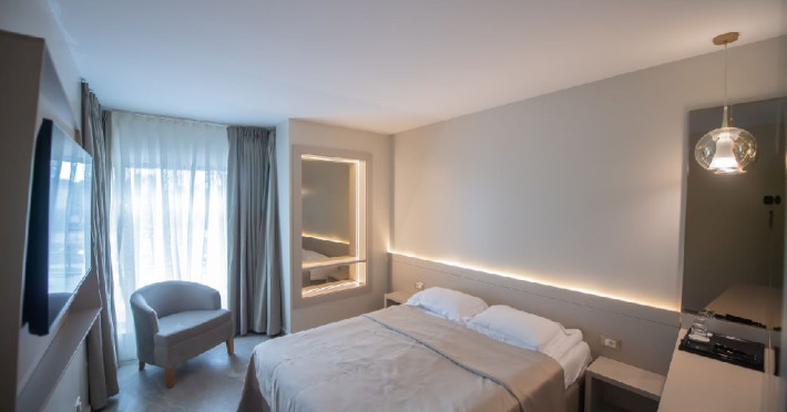 Dotari camere Toate camerele hotelului Atena sunt complet renovate si dotate cu: baie cu dus, TV, minibar, birou, sistem de climatizare, uscator de par, produse cosmetice, fotoliu, internet. Au vedere laterala la mare si statiune. Nu au balcon. Camerele duble, cu o suprafata de 16 mp si pat matrimonial de 160x200 cm, poate acomoda 2 adulti si 1 copil 0-11.99 ani sau 2 adulti si 2 copii (0-6.99 ani si 7-11.99 ani). Camerele triple dispun de un pat matrimonial (160x200) si un pat single . Ofera vedere laterala la mare. Suprafata 16 mp. Paturile suplimentare sunt de tip pliant. Suita, dispune de 2 camere cu intrare separata de un hol comun, ambele cu pat matrimonial 160x200 cm si o baie comuna, poate acomoda maxim 4 adulti si 1 copil 0-11.99 ani.