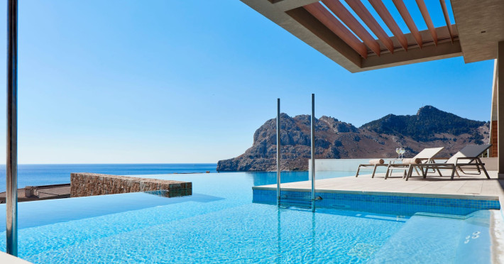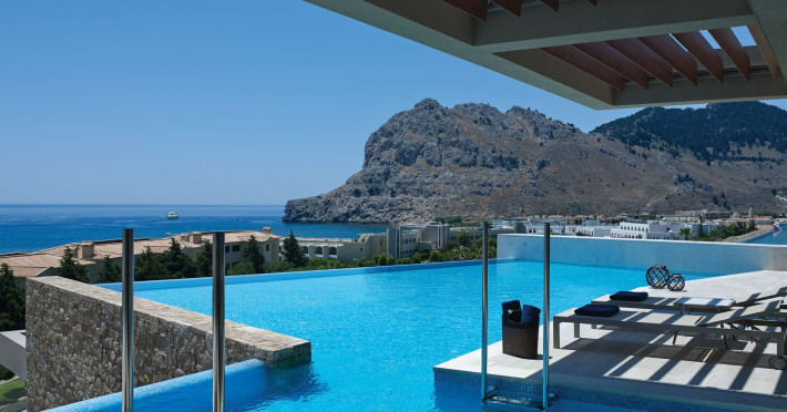 Atlantica Imperial Residences is one of the latest additions introduced into the Atlantica gourp. Located across the main entrance of Atlantica Imperial Resort, an area with breathtaking views over the natural bay of Kolymbia and the mountain of Tsambika, the new residences are bringing luxury to the next level, with new stylish rooms, swimming pool with fresh water as well as sun bathing area with sunbeds and parasols. The Atlantica Imperial Residences is situated in a perfect environment ideal for couples of all ages who wish to combine relaxation with luxury by offering a variety of accommodation with wealth of facilities, pleasant surroundings all in a peaceful location.