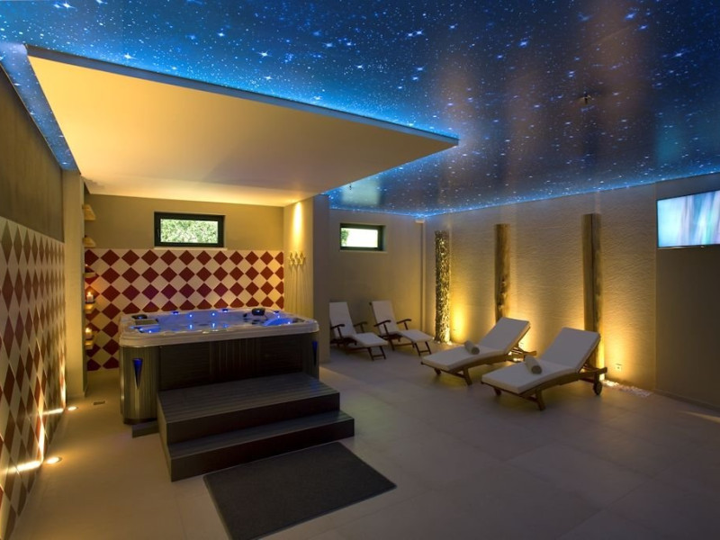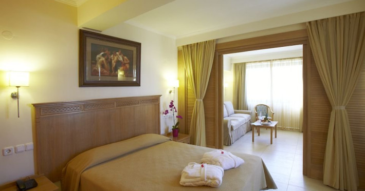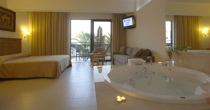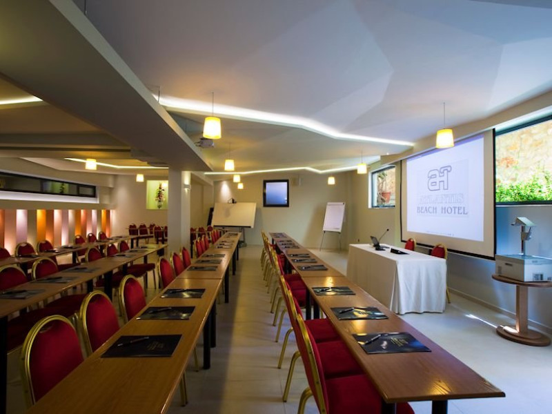 Dotari camere:hotelul dispune de 20camere in cladirea principal si 70 camere in bungalow-urile grupate in jurul cladirii pincipale,fiecare camera este mobilata intr-un stil modern si pot avea vedere fie la mare fie la gradina sau piscina, cu balcon, baie cu dus sau cada, uscator de par, telefon, internet wi fi, TV satellite, frigider, aer conditionat.
