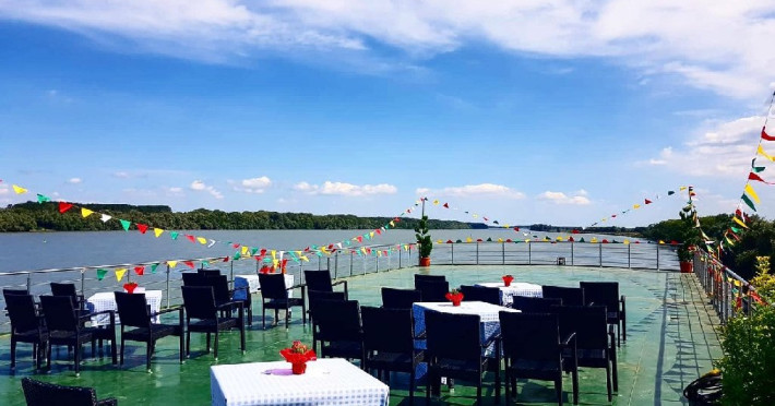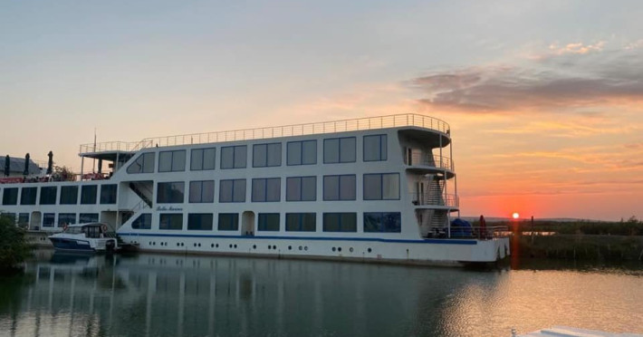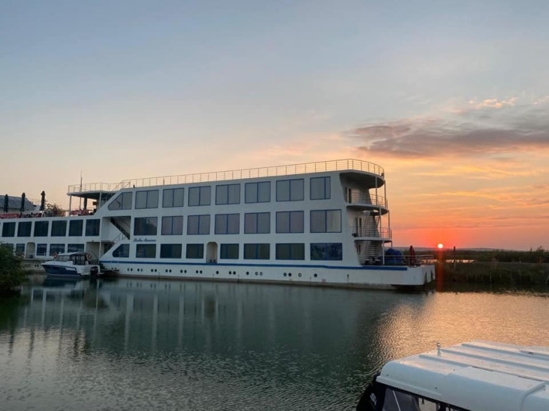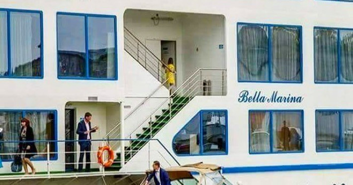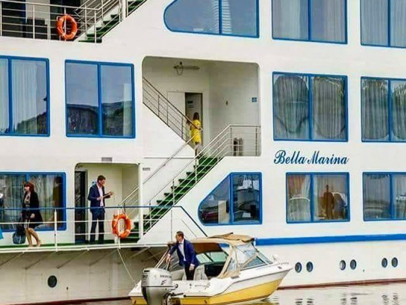 Hotelul plutitor Bella Marina este situat pe intr-un cadru natural de exceptie, in localitatea Baltenii de sus, judetul Tulcea, la aproximativ 3 km de soseaua Tulcea-Mahmudia. Unitatea pune de 53 spatii de cazare, restaurant, o sala moderna de conferinte, terasa deschisa, bar de zi, sala de fitness si sauna, parcare (contra cost). Serviciile de masa sunt oferitein restaurantul propriu cu specific pescaresc . Sala de conferinta are o capacitate de 24 locuri, prin suportul tehnic audio-video de ultima generatie ofera cadrul propice intalnirilor de afaceri, fiind ideala pentru sedinte, traininguri, prezentari si alte intruniri . Camerele duble sunt fie cu pat matrimonial fie cu doua paturi twin.Atat apartamentele standard cat si apartamentele VIP dispun de un dormitor cu pat matrimonial si un living cu canapea extensibila. Apartamentele VIP sunt spatioase si sunt situate la cel mai inalt nivel oferind o priveliste de exceptie. Camerele sunt dotate cu televizor LCD, minibar, cablu TV, internet, telefon, uscator de par, sistem de climatizare, sistem in caz de incendiu si detectoare de fum, sistem de acces cu card. Baia este dotata cu cada/cabina de dus, uscator de par, articole cosmetice, prosoape, halate de baie, papuci