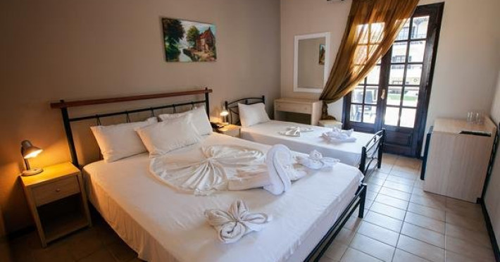 Localizat intr-un loc frumos, inconjurat de padure de pini verde luxurianta si atat de aproape de magnifica culoare azurie a marii, veti gasi Hotelul Bellagio, la 400 de metri de plaja Fourka, la una dintre cele mai cosmopolite peninsula din Halkidiki. Hotelul Bellagio - un hotel de 3 stele - este cea mai buna alegere pentru vacanta ta ideala, care combina relaxarea si distractia cu partenerul tau, familia sau prietenii tai. Stilul si atmosfera din Hotelul Bellagio creeaza un loc de confort si liniste, evadand din obisnuit. O ambianta cereasca care iti va fura inima din prima clipa.