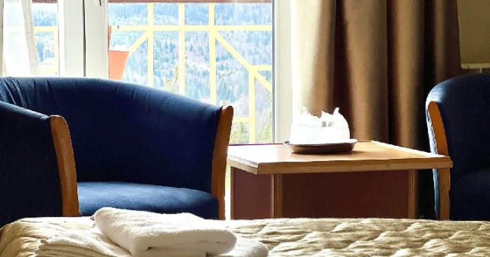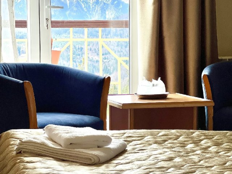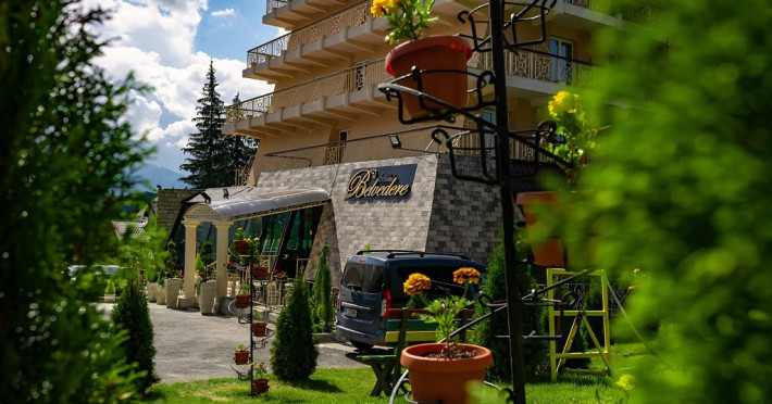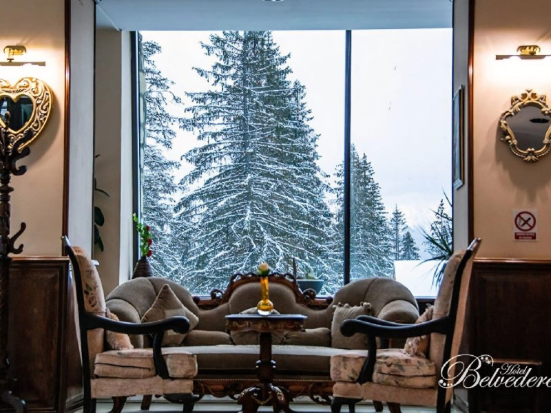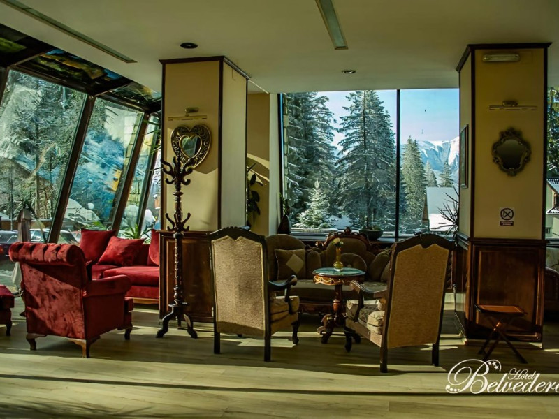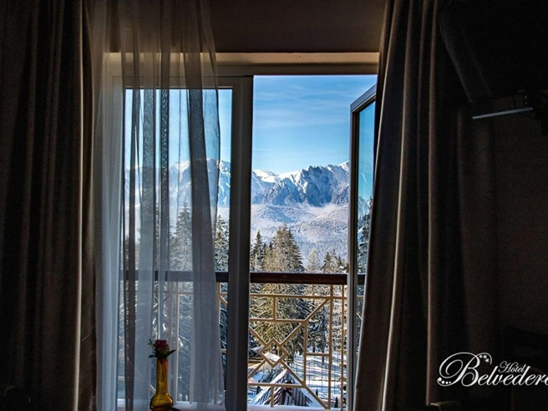 Amplasat intr-un cadru natural montan, inconjurat de privelistea unica a Muntilor Bucegi, Postavarul si Piatra Mare, Hotel Belvedere este gazda ospitaliera in orice anotimp. Construit in anul 1974, hotelul a fost dat in folosinta sub denumirea de Hotel Cioplea si a creat o traditie in turismul montan de pe Valea Prahovei. Dupa ani si ani, pastrand aceleasi standarde cunoscute, hotelul a renascut in 2003 cu o noua infatisare, cu acelasi renume si un nou nume: aBelvederea. Anul 2020 ne surprinde cu un nou decor, pastrand farmecul si traditia care l-au consacrat pe piata turistica din Romania. Hotel Belvedere*** este unul din hotelurile cu cea mai impresionanta panorama din Predeal. Hotel cu capacitate mare de cazare, cu un ridicat grad de confort ceea ce ii ofera calitatea de hotel select, obtinand astfel cele mai deosedite aprecieri din partea oaspetilor din tara si strainatate. Va informam faptul ca, incepand cu 01 IANUARIE2022 ,conform HCL nr.209/2021 taxa speciala aSalvamont, Promovaresi Dezvoltare Turistica, Infrumusetare Statiune a este de 5 lei/ turist/ zi,indiferent de categoriile de turisti ( copii , elevi, studenti,pensionari, etc) Dotari si servicii Restaurantul renovat si modernizat, dispune de un aSalon Clasica, cu un cadru elegant avand o capacitate maxima de 200 locuri si de un aSalon Moderna cu o capacitate maxima de 80 locuri unde se pot organiza petreceri private. Spa Belvedere este locul ideal pentru frumusetea trupului si a spiritului, un spatiu reconfortant, special creat pentru tine intr-o atmosfera de relaxare si armonie. Servicii masa MASA: restaurant propriu. Dotari camere Toate camerele au vedere catre Muntii Bucegi si Masivul Postavaru. Camera single: 1 pat pentru 1 persoana. Camera dubla twin: 2 paturi separate. Camera dubla matrimoniala: 1 pat matrimonial. Garsoniera: 1 pat matrimonial si o canapea / pat pentru 1 persoana Apartament: dispuse pe toate etajele, dormitor cu pat matrimonial si living cu canapea.