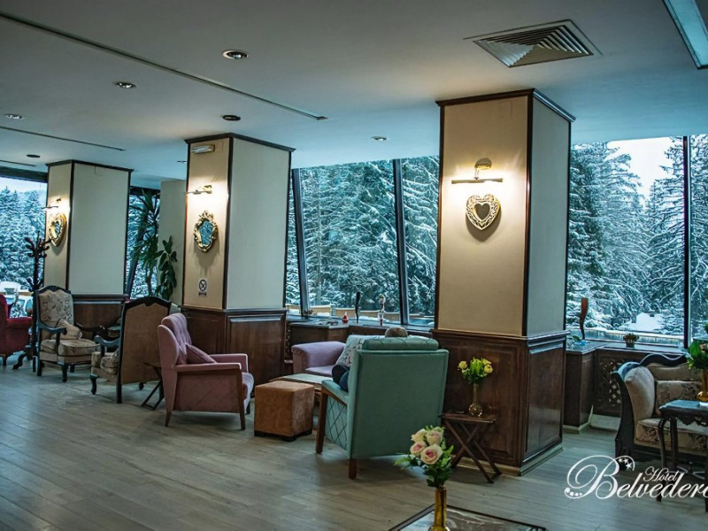 Amplasat intr-un cadru natural montan, inconjurat de privelistea unica a Muntilor Bucegi, Postavarul si Piatra Mare, Hotel Belvedere este gazda ospitaliera in orice anotimp. Construit in anul 1974, hotelul a fost dat in folosinta sub denumirea de Hotel Cioplea si a creat o traditie in turismul montan de pe Valea Prahovei. Dupa ani si ani, pastrand aceleasi standarde cunoscute, hotelul a renascut in 2003 cu o noua infatisare, cu acelasi renume si un nou nume: Belvedere. Anul 2020 ne surprinde cu un nou decor, pastrand farmecul si traditia care l-au consacrat pe piata turistica din Romania. Hotel Belvedere*** este unul din hotelurile cu cea mai impresionanta panorama din Predeal. Hotel cu capacitate mare de cazare, cu un ridicat grad de confort ceea ce ii ofera calitatea de hotel select, obtinand astfel cele mai deosedite aprecieri din partea oaspetilor din tara si strainatate. Va informam faptul ca, incepand cu 01 IANUARIE 2022 ,conform HCL nr.209/2021 taxa speciala Salvamont, Promovare si Dezvoltare Turistica, Infrumusetare Statiune este de 5 lei/ turist/ zi, indiferent de categoriile de turisti (copii, elevi, studenti, pensionari, etc) Dotari si servicii Restaurantul renovat si modernizat, dispune de un Salon Clasic, cu un cadru elegant avand o capacitate maxima de 200 locuri si de un Salon Modern cu o capacitate maxima de 80 locuri unde se pot organiza petreceri private. Spa Belvedere este locul ideal pentru frumusetea trupului si a spiritului, un spatiu reconfortant, special creat pentru tine intr-o atmosfera de relaxare si armonie. Servicii masa MASA: restaurant propriu. Dotari camere Toate camerele au vedere catre Muntii Bucegi si Masivul Postavaru. Camera single: 1 pat pentru 1 persoana. Camera dubla twin: 2 paturi separate. Camera dubla matrimoniala: 1 pat matrimonial. Garsoniera: 1 pat matrimonial si o canapea / pat pentru 1 persoana Apartament: dispuse pe toate etajele, dormitor cu pat matrimonial si living cu canapea.