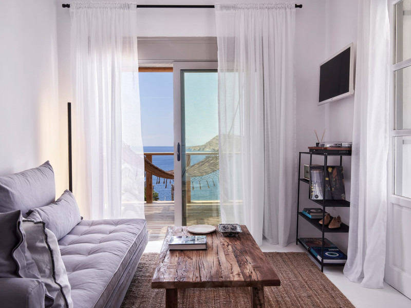 Tranquility and privacy in one of the most famous beaches in the world.Boheme Beach Houses is a new complex of sea front houses located 5-minutes' walking distance from the Elia Beach in Mykonos.Offering unique sea views of the Elia beach, all of these spacious apartments are equipped with double beds, a kitchenette, mini fridge, nespresso coffe machines and airconditioning.Ideal for friends and couples who want to have private moments just a few steps from the beach.Live in style at Boheme Beach Houses.