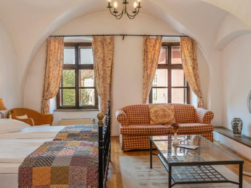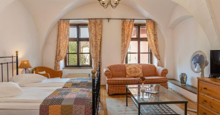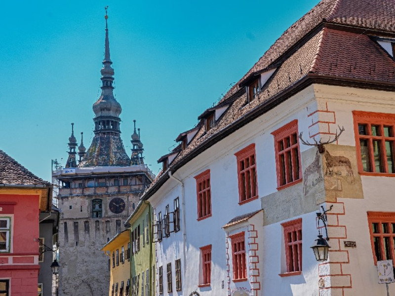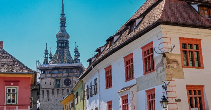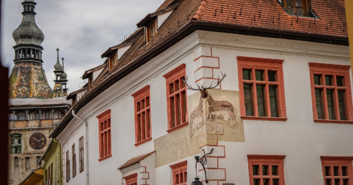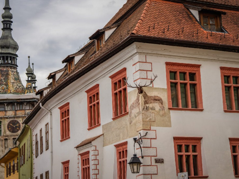 Casa cu Cerb este situata intr-una dintre cele mai vechi cladiri din Sighisoara, fiind denumita dupa pictura murala de pe fatada, care reprezinta un cerb. Proprietatea se afla la 110 metri de Turnul cu Ceas si la 100 de metri de Piata Muzeului. Camerele sunt situate la etajul 2 sau la mansarda si includ acces gratuit la internet WiFi, TV prin satelit, telefon, podea din lemn si baie privata. Pentru un cost suplimentar, oaspetii au la dispozitie o parcare privata, situata la 500 de metri, in partea de jos a orasului, in afara cetatii.