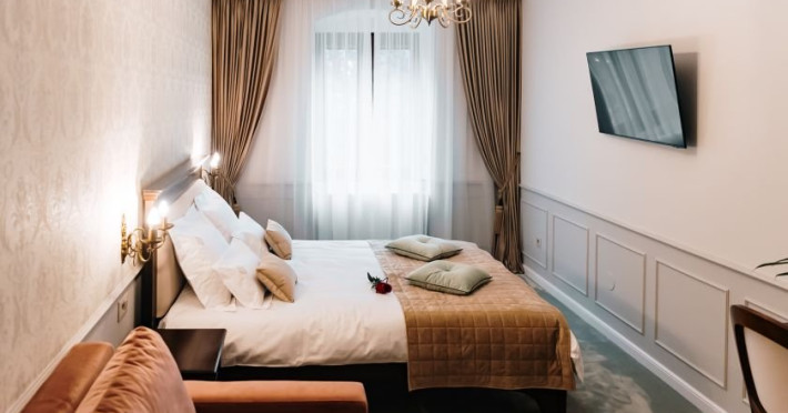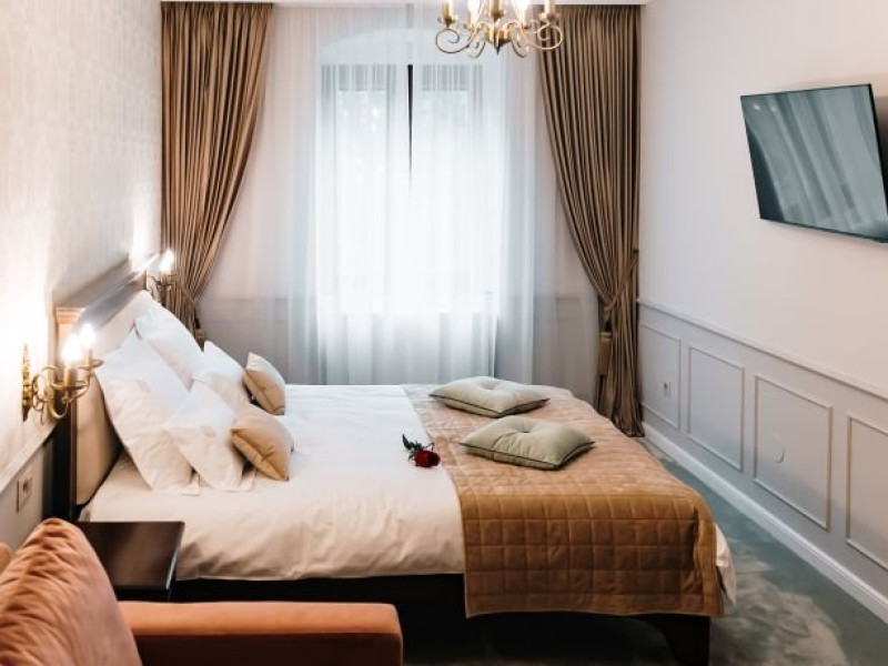 Casa Salzburg Hotel Sibiu este situat in centrul Sibiului ,pe str.Cetatii, la doar 13 minute de mers pe jos de Podul Minciunilor. Renovata cu grija in 2024, pensiunea pastreaza spiritul arhitectural art-nouveau, oferind o atmosfera boema si aristocrata. Fiecare camera este o oaza de liniste si rafinament, unde modernul intalneste frumusetea clasica, oferind o experienta de neuitat intr-un cadru intim si sofisticat. Are o capacitate de cazare de 6 camere ,17 locuri,distribuite astfel : -camera superioara twin cu vedere la curte cu 2 paturi de 1 persoana /et 1 -camera superioara de familie cu vedere la parc cu pat dublu matrimonial si un fotoliu extensibil de 1 persoana./et 1 -camera de familie cu pat dublu matrimonia cu vedere la parc cu pat dublu matrimonial si canapea de 2 persoane /et 1 -camera dubla de familie cu pat dublu matrimonial si canapea de 2 persoane /et 2 -camera dubla economy ptr 2 pers (pat dublu matrimonial 180/200)/et 2 -camera dubla mare ptr 2 persoane (pat dublu marimonial 160/200/et 2 Tarifele includ mic dejun bufet rece: mezeluri,branzeturi traditionale,legume,fructe,cafea,ceai,unt,dulceata ...plus la cerere omleta,ochiuri,oua fierte .