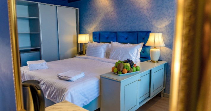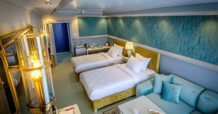 Dubla matrimoniala sau twin cu vedere spre mare/piscina - cuprinde un spatiu deschis cu o suprafata de 20-24 mp, zona pentru dormit cu pat matrimonial (160x200 cm) sau doua paturi tein ( 110x200 cm), canapea extensibila (et. 2 si 4) sau canapea fixa (et.1 si 3), baie cu dus, balcon individual, mobilier balcon. Capacitate maxima: 2 adulti + 2 copii (0 - 11.99 ani) sau 3 adulti - DACA SE FOLOSESC PATURILE EXISTENTE