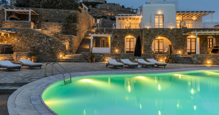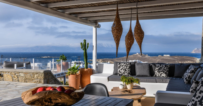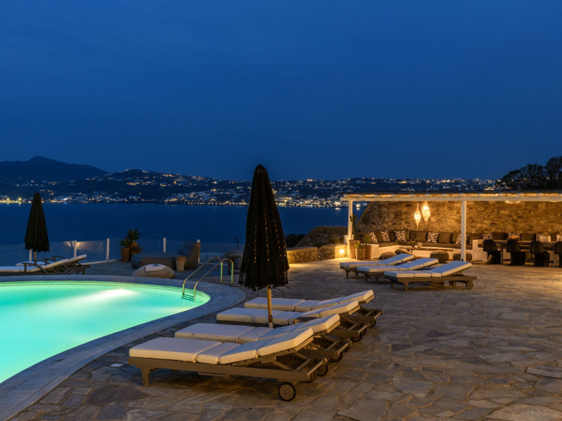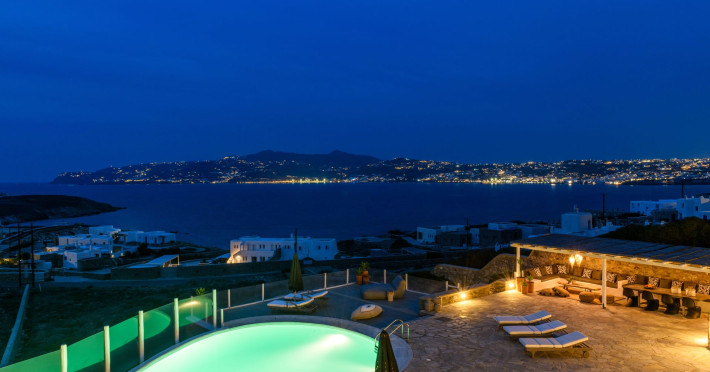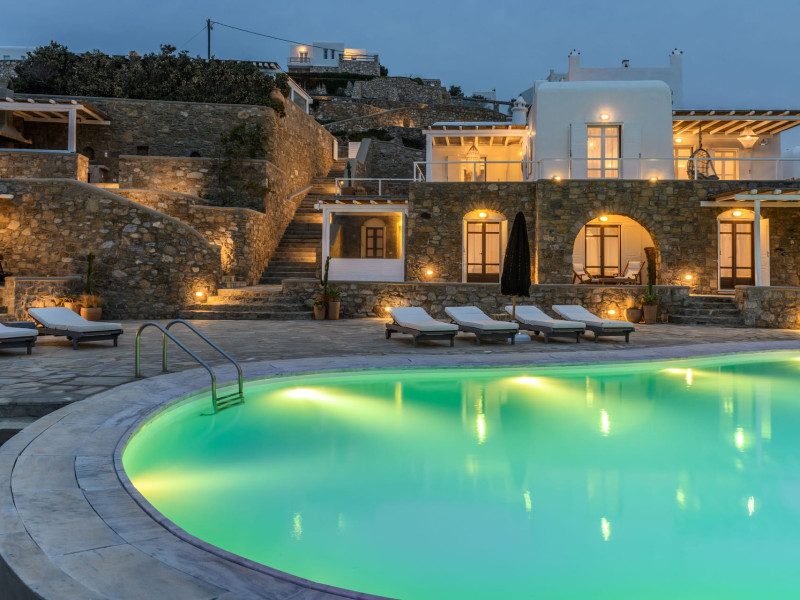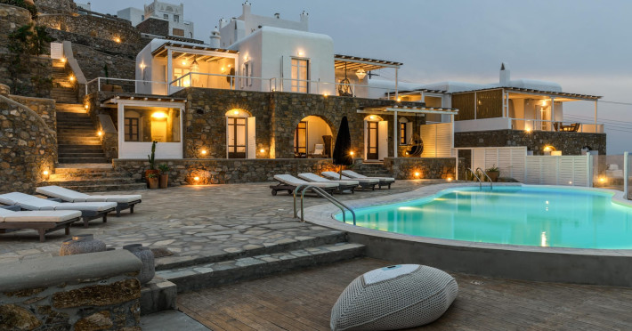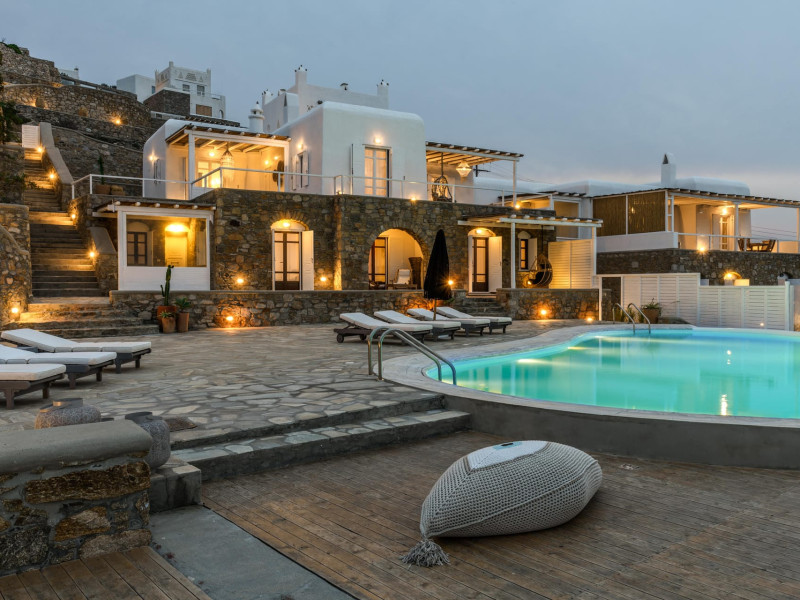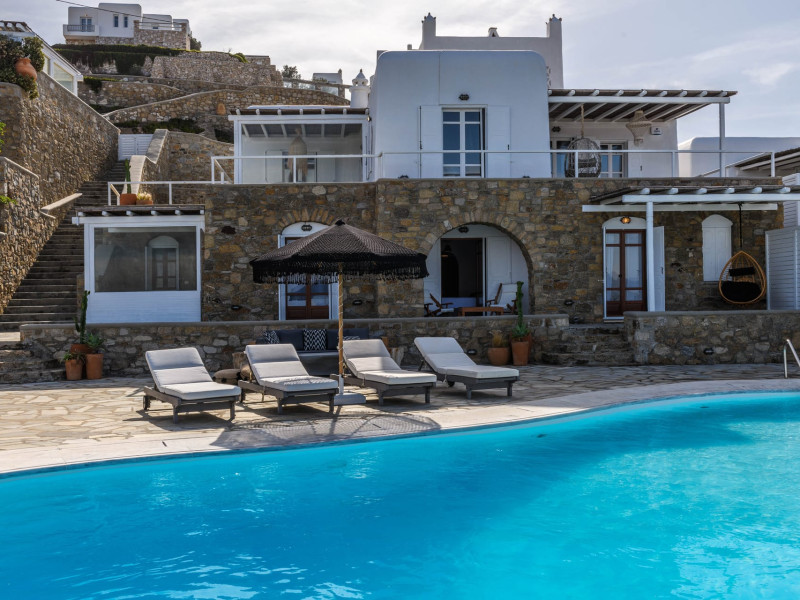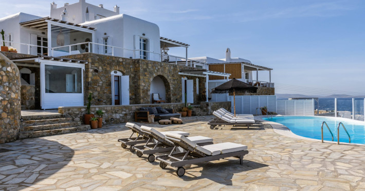 Cosset Villas in Mykonos... A luxury property for memorable vacation to the ultimate Greek summer destination!Allow us to host you and live the Cosset experience in 950sq.m. to enjoy your days in Mykonos.It consists of two buildings. There are two fully equipped kitchens and two big living rooms. The swimming pool is one and it is outside at the terrace with panoramic sea views and a big shaded lounge. You can also enjoy BBQ facilities. The entire Villa features nine separated bedrooms, seven ensuite bathrooms, two of which include a jacuzzi and one wc. We can accommodate up to eighteen people in ease and comfort. There is, also, ability to host twenty people in total, upon request. You can have the big Villa for outmost privacy or one building. It is separated in a three bedroom Villa with sea views and a six bedroom Villa with sea views and the pool.We will be more than happy to welcome you!! :)