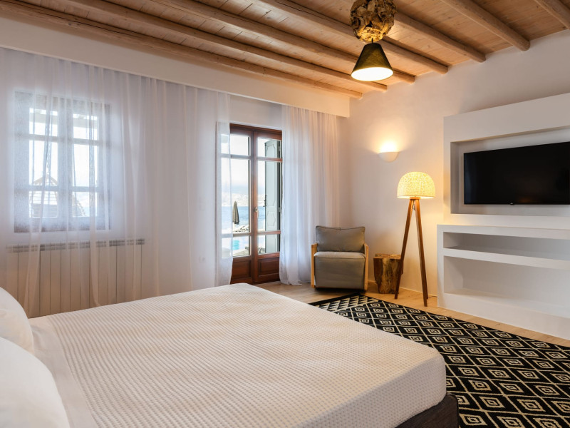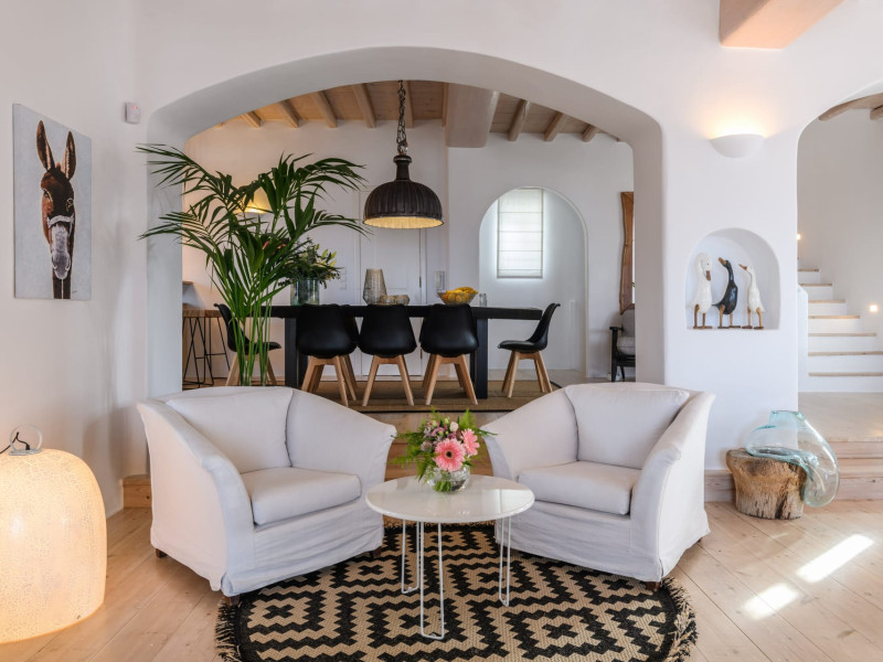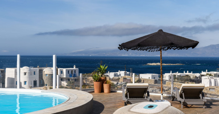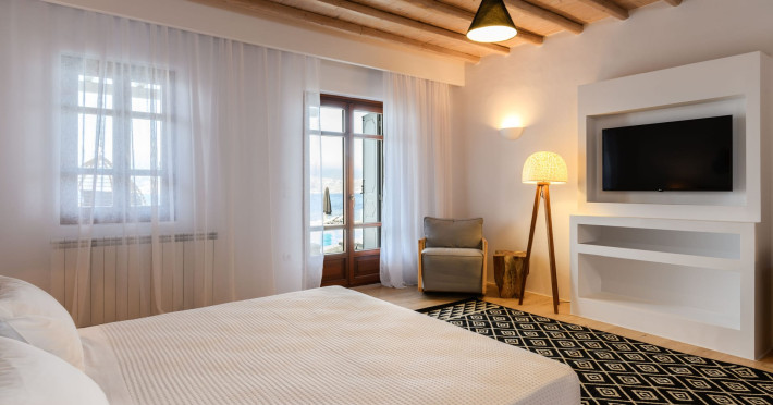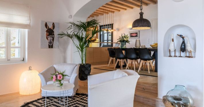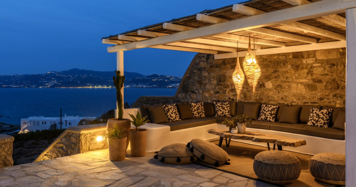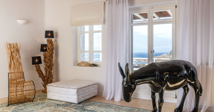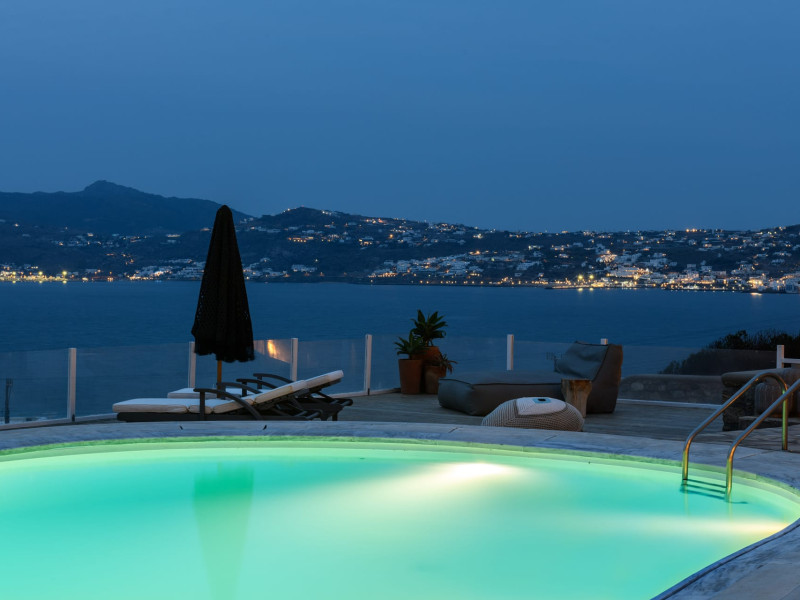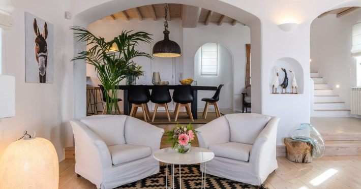 Cosset Villas in Mykonos... A luxury property for memorable vacation to the ultimate Greek summer destination!Allow us to host you and live the Cosset experience in 950sq.m. to enjoy your days in Mykonos.It consists of two buildings. There are two fully equipped kitchens and two big living rooms. The swimming pool is one and it is outside at the terrace with panoramic sea views and a big shaded lounge. You can also enjoy BBQ facilities. The entire Villa features nine separated bedrooms, seven ensuite bathrooms, two of which include a jacuzzi and one wc. We can accommodate up to eighteen people in ease and comfort. There is, also, ability to host twenty people in total, upon request. You can have the big Villa for outmost privacy or one building. It is separated in a three bedroom Villa with sea views and a six bedroom Villa with sea views and the pool.We will be more than happy to welcome you!! :)