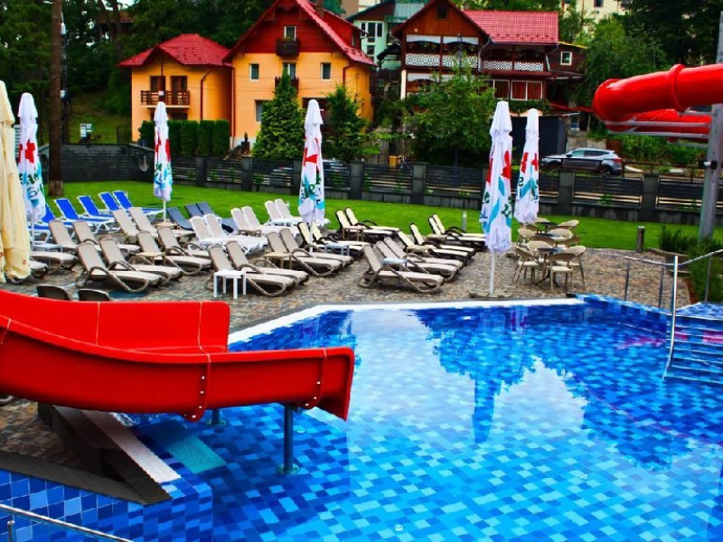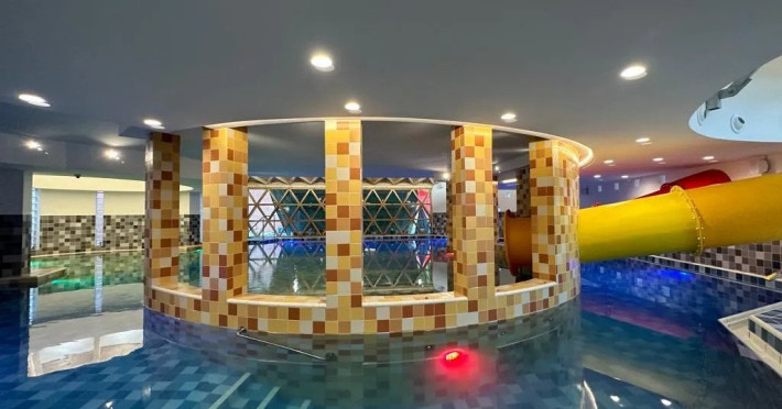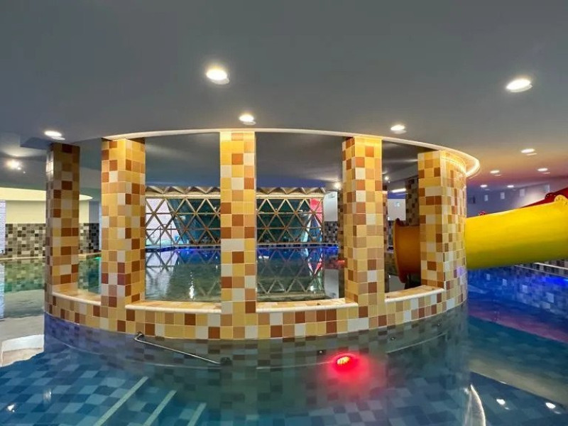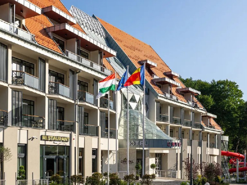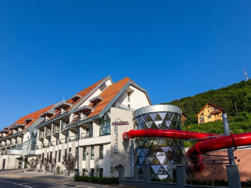 Piscine cu apa dulce sisarata, doua zone interioare si una in aer liber, piscina pentru copii, toboganepentru placerea oaspetilor pasionati de experiente tip aquapark si o piscinaunica de aventura in zona - acestea sunt doar cateva dintre facilitatile careasigura noul nivel de relaxare la hotelul Crystal.