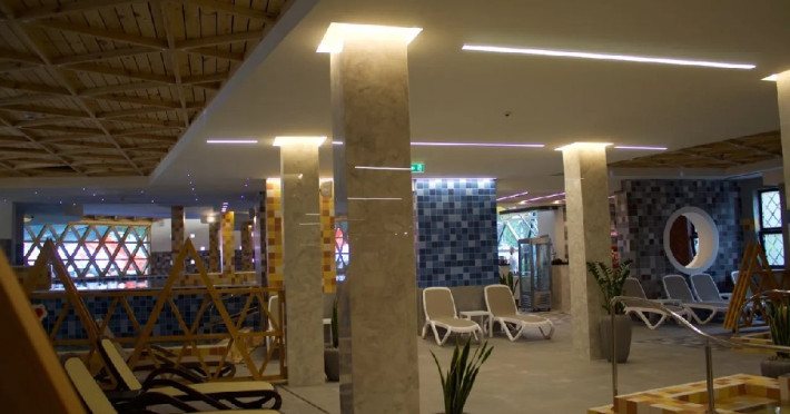 Zona de wellness a hoteluluieste amenajatia la subsol, oferind o varietate de piscine, doua tobogane cu apa,diferite tipuri de sauna, o unitate de servica terapeutice cu asistenta medicala,servica de masaj si un bar cu gustari si bauturi.