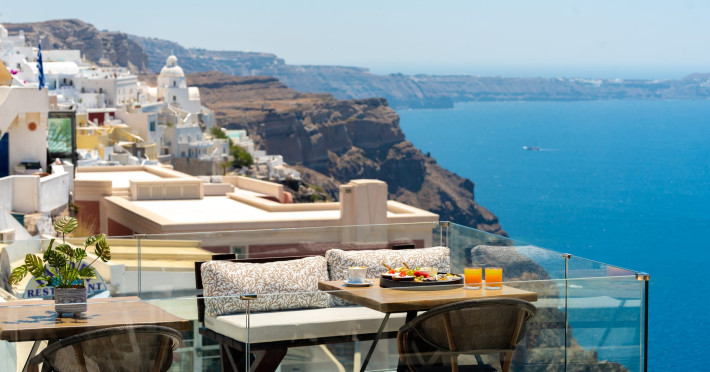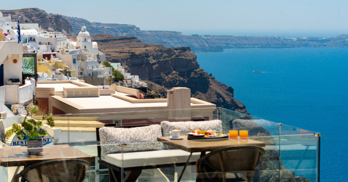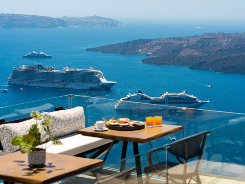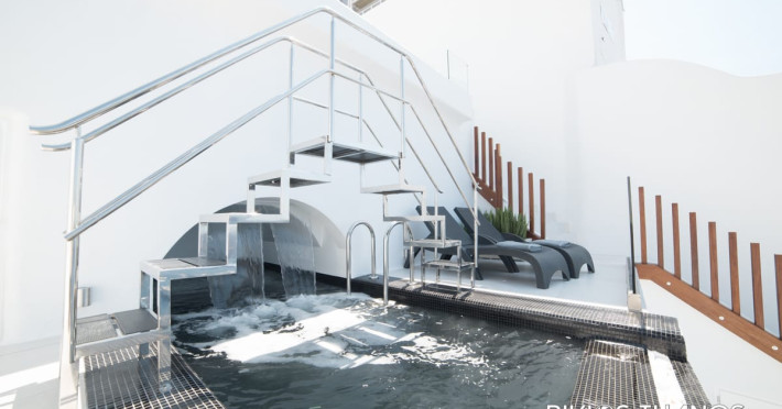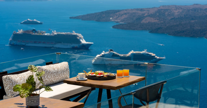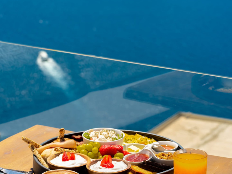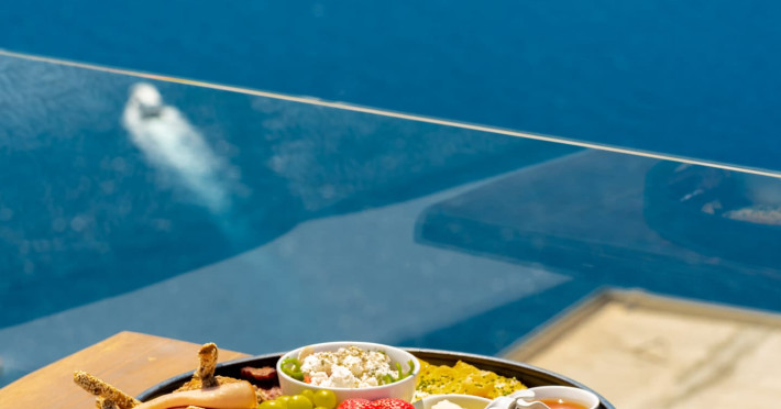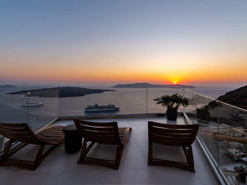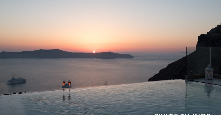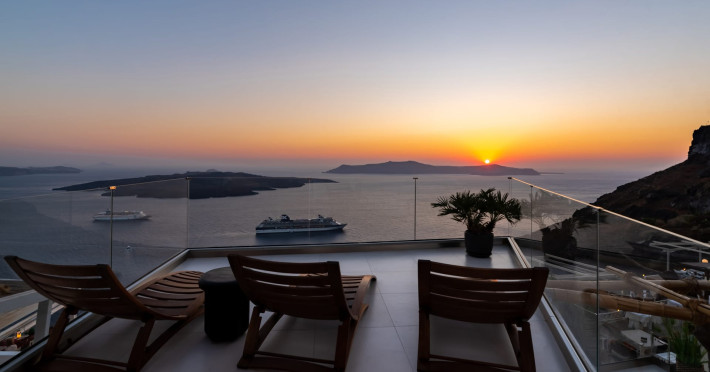 Inspired by the black volcanic nature and infused with traditional Cycladic architecture, the Day Dream Luxury Suites are the perfect combination of minimal design, true style and pure luxury.Pamper yourself in one of its infinity pools or Jacuzzis and gaze at the horizon where the sky meets the sea and together they compliment the views of the rough cliffs and the volcano that stands imposingly in the center. Take pleasure in a majestic sunset while having a unique and unforgettable experience.