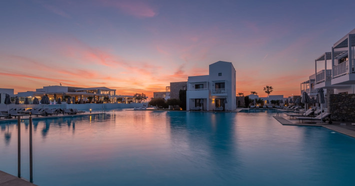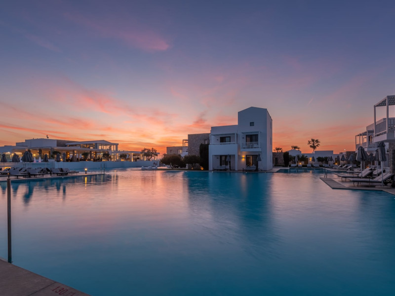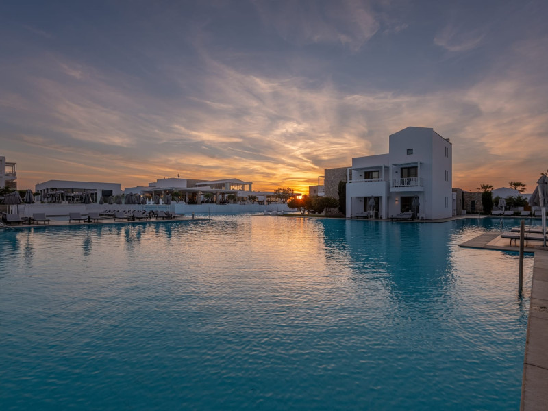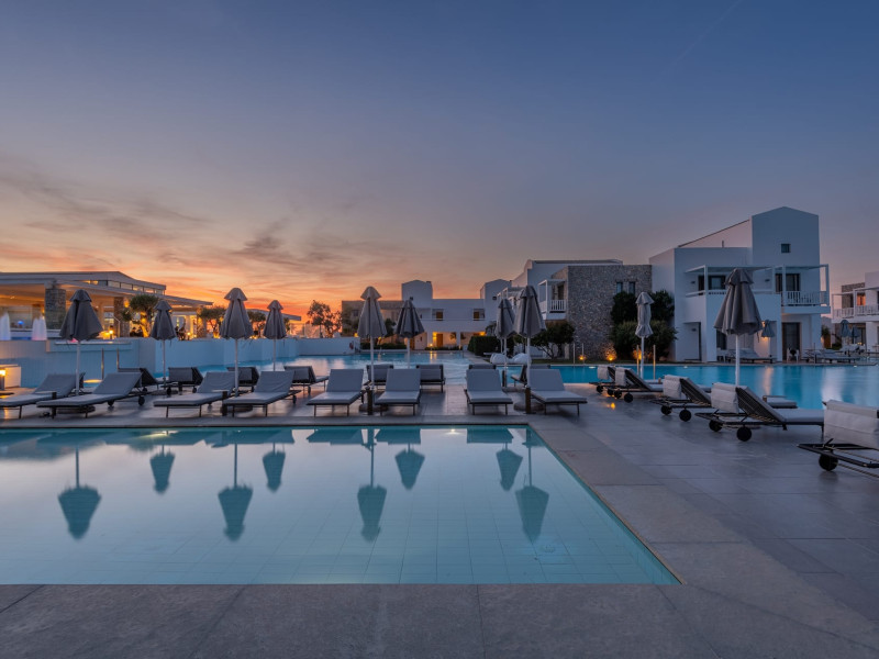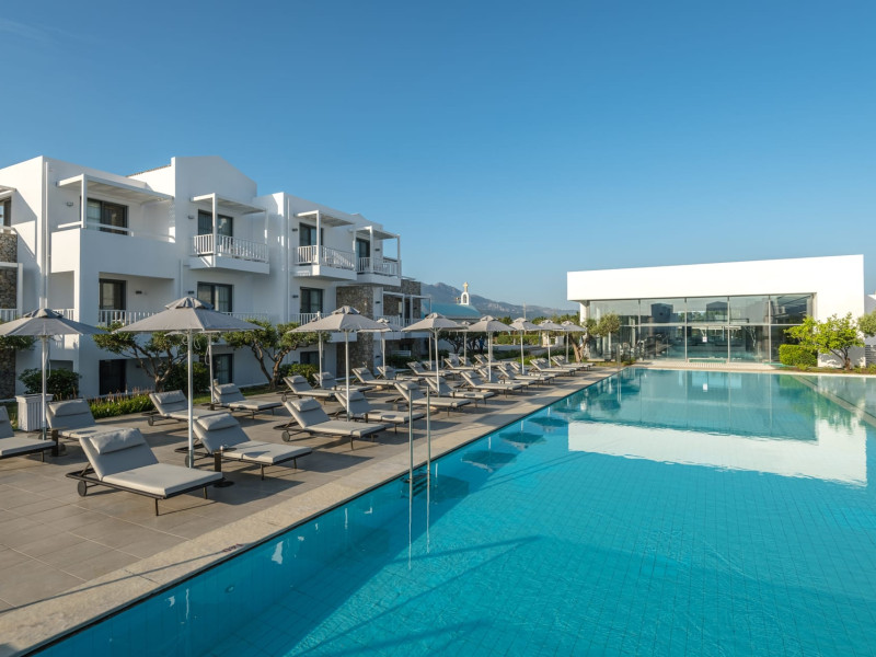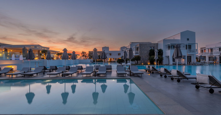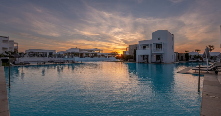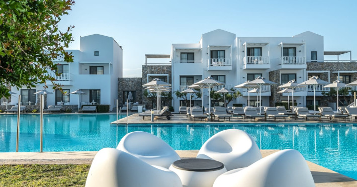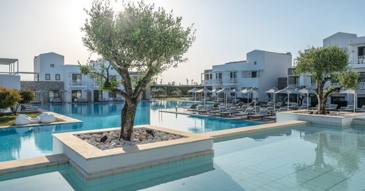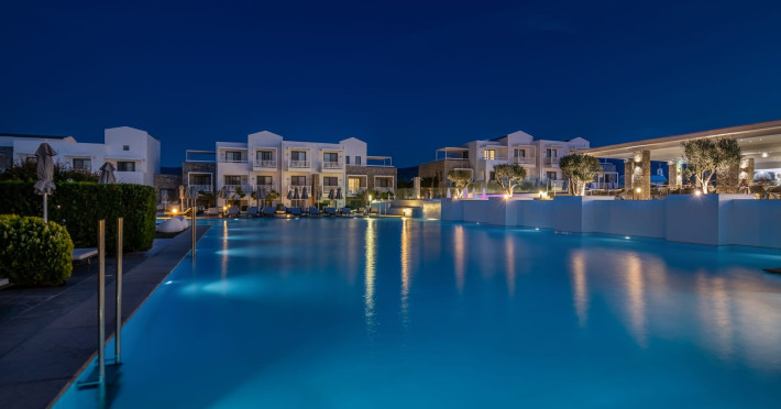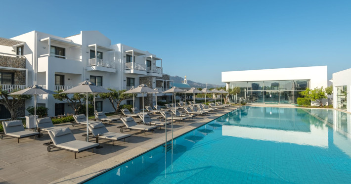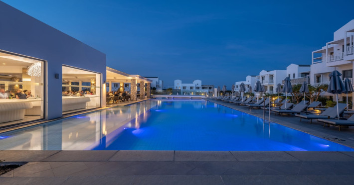 Diamond Deluxe Hotel & Spa – Adults Only 5? | Kos, GreeceAt the edge of the Aegean Sea, the Diamond Deluxe Hotel & Spa embodies the essence of calm luxury — a 5-star adults-only retreat designed for guests aged 16 and over who seek serenity, elegance, and refined comfort. This boutique resort blends contemporary architecture with authentic Greek charm, surrounded by shimmering lagoon-style pools, lush gardens, and breathtaking sea views.Guests can choose among 110 elegant rooms and suites, including Swim-Up Rooms with direct pool access and Private Pool Suites offering complete seclusion. Every detail reflects understated sophistication, natural light, and the warmth of genuine hospitality.Dining & WineCulinary artistry defines the Diamond Deluxe experience.Emerald Restaurant serves a rich breakfast buffet with fresh local and organic products, along with a la carte options. In the evening, it transforms into a fine dining venue celebrating modern Mediterranean cuisine, highlighting organic, locally sourced ingredients.Peruzzi Restaurant offers a refined a la carte experience inspired by contemporary Greek gastronomy, crafted with organic and seasonal produce from local farms.Both restaurants feature an exceptional wine collection, showcasing premium Greek and international labels perfectly paired with each dish.Committed to sustainability, the hotel follows a Zero Waste System, ensuring respect for nature and a conscious approach to luxury living.Guests can also enjoy light Mediterranean bites, signature cocktails, and vintage champagnes at the Marquise Pool Bar and Champagne Bar — ideal for relaxing afternoons or sunset moments by the sea.Private Beach & RelaxationThe hotel’s private beach offers an oasis of calm and exclusivity, with elegant loungers, attentive service, and the soothing rhythm of the Aegean. Every moment is designed for total relaxation and a deep connection with nature.Wellness & LifestyleAt the Diamond Spa & Wellness Center, holistic treatments combine medical precision with sensory indulgence, in collaboration with the Dermatology Cosmetic Laboratory Clinic. A Technogym® fitness studio, tailor-made wellness programs complete the rejuvenating experience.As night falls, soft live music and DJ sets by the pool create an elegant, relaxed atmosphere — where every detail whispers sophistication.Diamond Deluxe Hotel & Spa — where calm luxury meets sustainability, and every moment is crafted with care, beauty, and intention.
