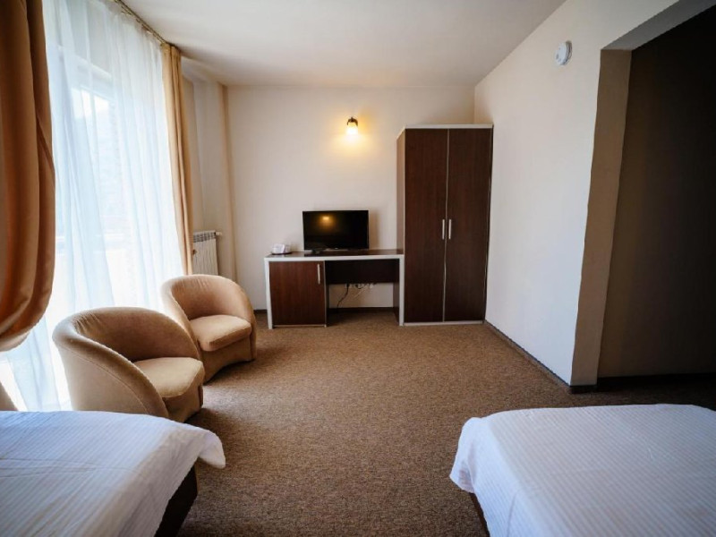 Hotelul dispune de 220 de spatii de cazare, restaurant, piscina, jacuzzi, saune, sala fitness, baza de tratament, loc de joaca pentru copii, sali de conferinta, parcare gratuita in limita disponibilitatilor Serviciile de masa se acorda in restaurantul propriu. Pachetele cu mic dejun Masa se serveste tip bufet suedez si include urmatoarele bauturi: apa plata si carbogazoasa, suc, ceai, cafea, cappuccino. Interval de servire masa: 07:30 - 10:00 Pachetele cu demipensiune Mesele se servesc tip bufet suedez. Micul dejun include urmatoarele bauturi: apa plata si carbogazoasa, suc, ceai, cafea, cappuccino. Cina include urmatoarele bauturi: apa plata si carbogazoasa, suc. Intervale de servire mese: mic dejun: 07:30 - 10:00 , cina 19:00 - 21:00 Pachetele cu all inclusive light Mesele se servesc tip bufet suedez si includ bauturi non-alcoolice si alcoolice. Non-alcoolice: apa plata si carbogazoasa, suc, ceai, cafea, cappuccino servite pe durata meselor Alcoolice: bere, vin alb/rose/rosu la draft, vodka, whiskey, coniac si crema de whiskey sunt servite exclusiv in timpul pranzului si a cinei Intervale de servire mese: mic dejun: 07:30 - 10:00, pranz 13:00 - 15:00, cina 19:00 - 21:00 Dotari camera: wi-fi, tv cu ecran plat, minibar, telefon, articole baie (casca dus, sapun individual, sampon flacon), uscator de par, baie cu cabina de dus, birou, balcon. Camerele Diviana sunt dotate cu paturi twin 90 x 200 sau pat matrimonial 160 x 200. Capacitate camera: 2 adulti cu un copil 0 - 14 ani, DACA SE FOLOSESC PATURILE EXISTENTE In acest tip de camera nu se poate adauga pat suplimentar. Camerele Superior sunt situate la etaj 4 si etaj 5 si dunt dotate cu pat matrimonial 180 x 200 sau 160 x 200. Capacitate camera: 2 adulti cu 1 copil 0 - 14 ani, DACA SE FOLOSESC PATURILE EXISTENTE Camerele Comfort sunt situate la etaj 9 si etaj 10 si pot fi twin unite 180 x 200 sau matrimonial 160 x 200 Capacitate camera: 2 adulti cu 1 copil 0 - 14 ani, DACA SE FOLOSESC PATURILE EXISTENTE Camerele Family sunt situate care una pe fiecare etaj si sunt dotate cu pat matrimonial 160 x 200 si o sofa 90 x 200 Capacitate camera: 2 adulti cu 2 copii 0 - 14 ani. Apartamentele sunt situate pe fiecare etaj si sunt dotate cu pat matrimonial 160 x 200 si o sofa 150 x 230. Capacitate camera: 3 adulti cu 2 copii 0 - 14 ani sau 2 adulti cu 3 copii 0 - 14 ani.