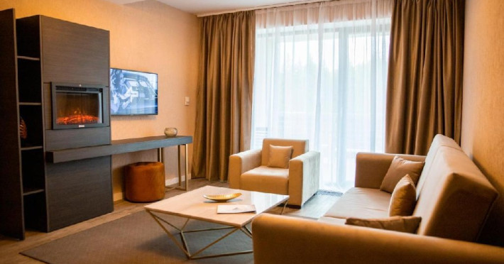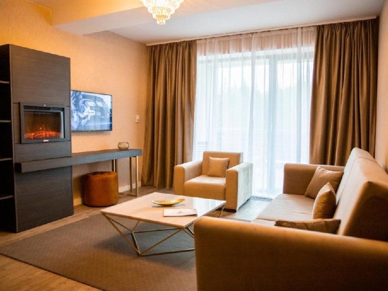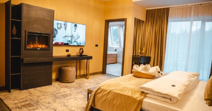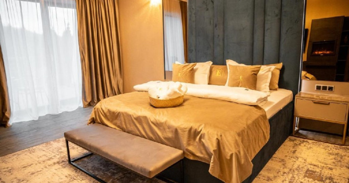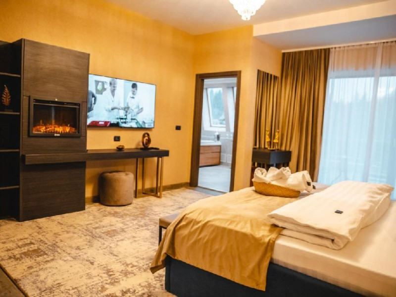 Deluxe Junior Suite -open space, pat matrimonial, canapea extensibila, semineu, balcon sau terasa. 3 adulti sau 2 adulti si 2 copii