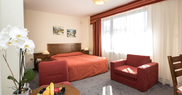 INFORMATII GENERALE: Hotelul a fost construit in anul 2005 si a fost renovat in anul 2015. CAPACITATE: - cladire cu 3 etaje - 1 lift - 42 camere duble (max. 2+1/3 persoane, 18-20 m²) - 3 studiouri (max. 2+2 persoane, 32 m²) - 2 apartamente, la cerere (max. 2+2/4 persoane, 42 m²).