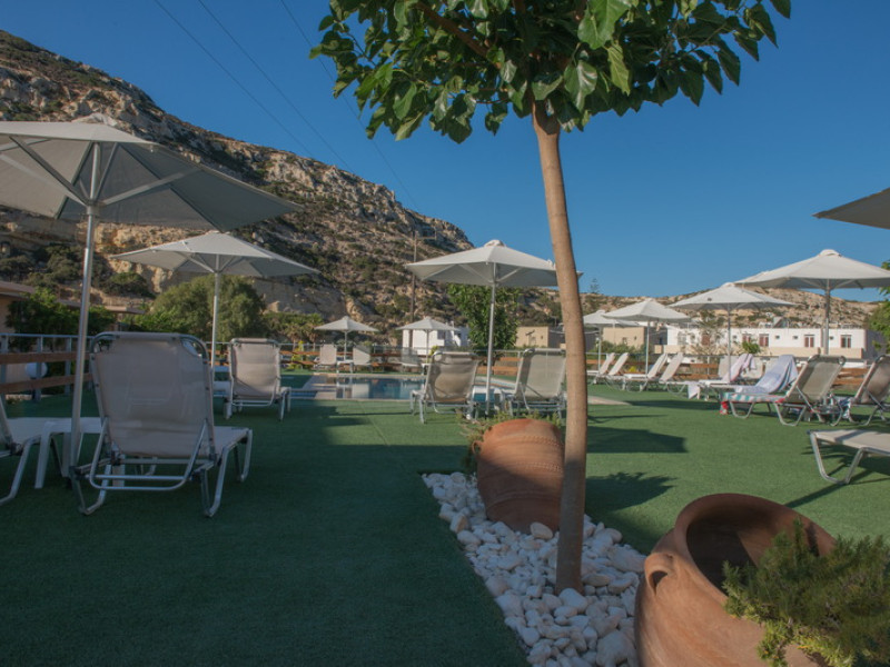 The hotel is built in the picturesque village of Matala situated on the south side of Crete. It is a family business established in 1975. The recently renovated hotel offers unparalleled views to the crystal clear waters of the sea which is located only 50 meters away from the hotel.