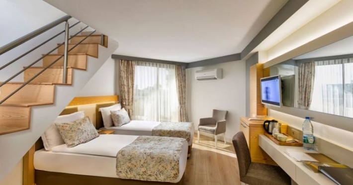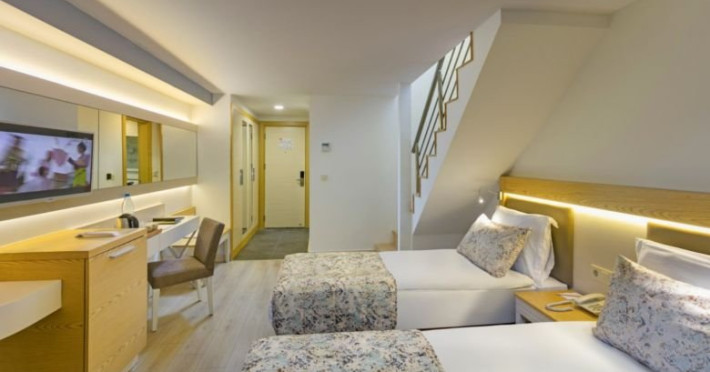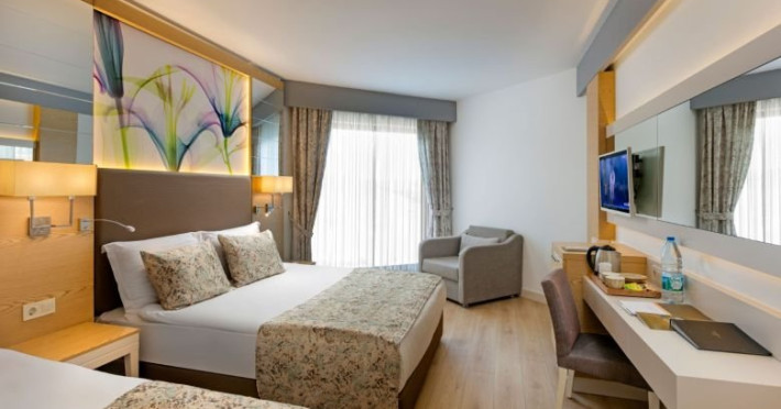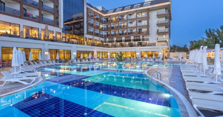 Glamour Resort & Spa 5* este localizat la doar 350 de metri de plaja cu nisip. Cel mai apropiat aeroport este Aeroportul International Antalya, la 55 km.