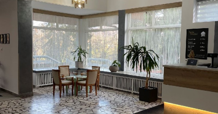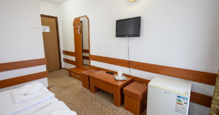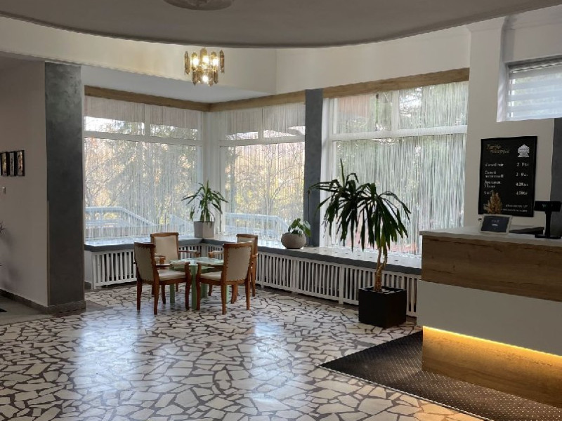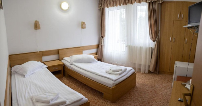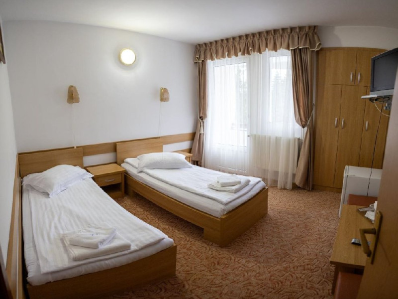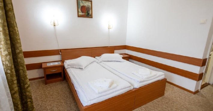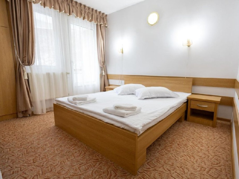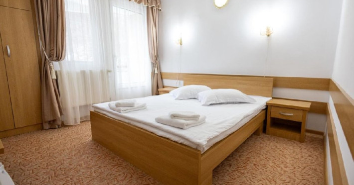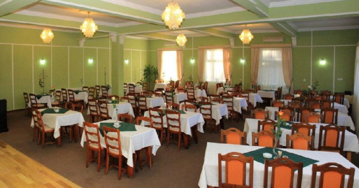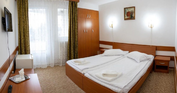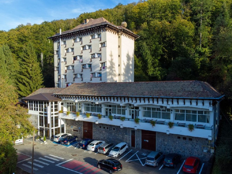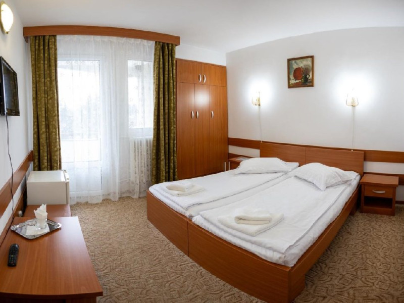 Situat in statiunea balneoclimaterica Sovata, intr-un cadru natural deosebit, ferit de forfota din centrul orasului, dar totodata la o distanta rezonabila de cele mai importante atractii turistice. Hotelul dispune de 150 locuri de cazare, restaurant propriu si bar de zi, sala de conferinta, parcare proprie. Restaurant propriu cu o capacitate de 200 locuri. Mic dejun - meniu fix Hotelul are 7 etaje, 63 de camere cu doua paturi sau pat matrimonial, 2 apartamente si 5 suite cu 2 camere a cate 2 locuri si grup sanitar comun. Toate camerele au balcon, frigider, TV cu ecran plat si programe prin cablu. Camerele de la etajele 5, 6 si 7 au fost renovate de curand, mobilierul si mocheta fiind schimbate. Hotelul nu dispune de paturi suplimentare. Wi-Fi gratuit in camere.