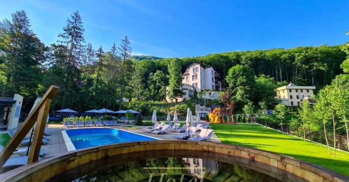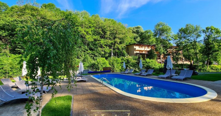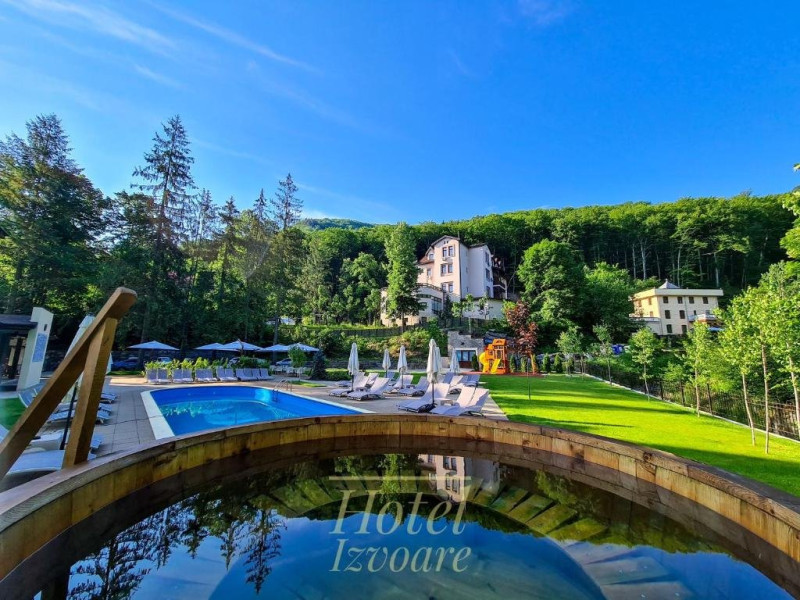 Hotel Izvoare Caciulata este cea mai recenta investitie din salba de statiuni valcene, un hotel creat sa poata oferi o oaza de liniste cu aer curat, un loc al intimitatii , gratiei si relaxarii. Hotel Izvoare Caciulata amplasat intr-un cadru natural privilegiat, inconjurat de privelistea unica a Masivului Cozia , a Parcului Izvoare si a raului Olt, situat la o distanta de 18 km de Rm.Valcea si 80 de km de Sibiu pe DN 7 - E 81,poate fi gazda perfecta in orice anotimp. Primavara va puteti declara sentimente de dragoste in mirajul razelor de soare care deschid mugurii copacilor, vara puteti petrece vacante cu familia facand excursii in statiunile valcene ce beneficiaza de aproape toate formele de relief dispuse in trepte de la nord la sud , toamna puteti admira mantia aramie a padurii sub un soare bland, iar in timpul ierni va puteti bucura de atmosfera de sarbatori cu aroma vinului fiert sau de ce nu o partida de ski.