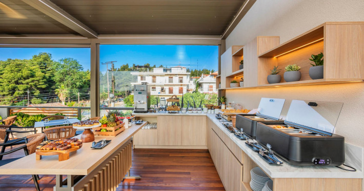 Vozina Hotel is a charming boutique hotel located in a quaint seaside village in Metamorfosi, Halkidiki. Housed in a building spread over three floors of 300 sqm each, the hotel offers an intimate yet spacious atmosphere. It features 22 rooms with a total of 70 beds, all of which have been fully renovated to meet modern standards. Guests can also enjoy an amazing roof garden that provides the perfect setting for relaxation while taking in stunning sea views. This blend of thoughtful design, personalized service, and contemporary comfort guarantees an unforgettable stay in one of Halkidiki's most captivating locations.