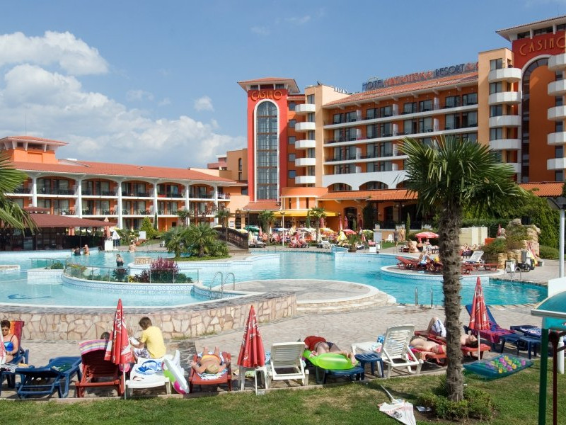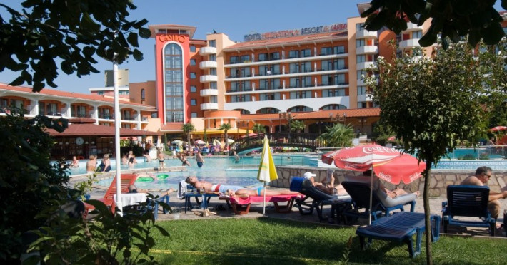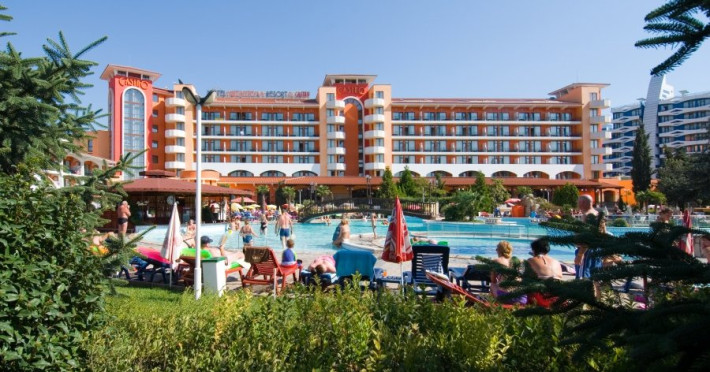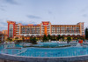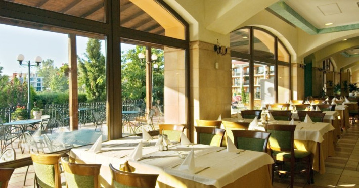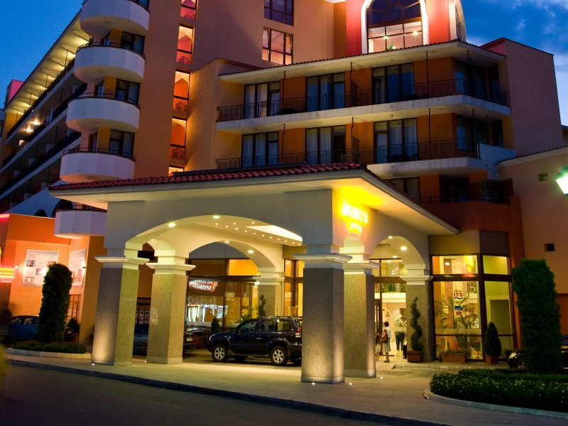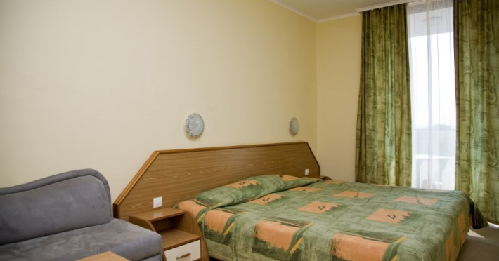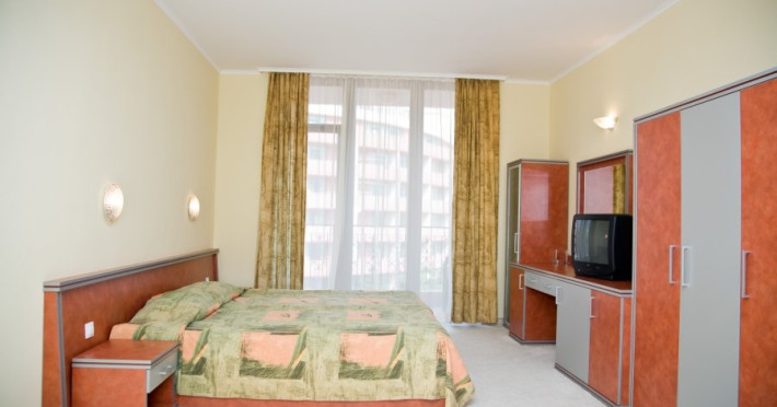 Hotelul Hrizantema este de 4 stele, situat la aproximativ 750 de metri de partea centrala a Sunny Beach, intr-un parc frumos la doar 250 de metri de plaja. Plaja: Nisipoasa, la 250 de metri distanta de hotel. Fundul marii este plat, cu acces lin. Plaja este castigatoare a premiului Blue Flag. Cazare: Hotel Hrizantema este format din doua cladiri - o cladire de 3 etaje fara lift o cladire de 8 etaje cu 4 lifturi, construita in anul 2004. Are un total de 435 de camere - dubla economie, dubla si dubla confort. DBL 2+1/2+2 ECONOMY: aprox19 m2 . Camerele duble economice sunt situate la parter si au vedere numai la gradina. Toate camerele sunt dotate cu aer conditionat si au 2 paturi separate si un fotoliu extensibil, TV prin satelit, mini-frigider, telefon, balcon, baie cu dus si uscator de par. Patul suplimentar in toate camerele este fotoliu extensibil. Capacitate maxima de 3 adulti sau 2 adulti cu 2 copii. DBL 2+1: aprox 19 m2. Toate camerele sunt dotate cu aer conditionat si au 2 paturi separate si un fotoliu extensibil, TV prin satelit, mini-frigider, telefon, balcon, baie cu dus si uscator de par. Patul suplimentar in toate camerele este fotoliu extensibil. Camerele duble standard au vedere la piscina sau gradina. Capacitate maxima de 3 adulti. DBL 2+2 CONFORT: aprox 24 m2. Toate camerele sunt dotate cu aer conditionat si au 2 paturi separate si un fotoliu extensibil, TV prin satelit, mini-frigider, telefon, balcon, baie cu dus si uscator de par. Patul suplimentar in toate camerele este fotoliu extensibil. Camerele duble confort au vedere la strada sau la piscina. Capacitate maxima de 3 adulti cu 1 copil. Patutul de copii este furnizat cu o cerere prealabila la o taxa de 6 BGN pe zi. Animalele de companie nu sunt permise in hotel. Hotelul dispune de 2 camere adaptate pentru persoane cu dizabilitati. Despre hotel: bar la piscina, lobby bar cu gradina, restaurante tematice (restaurant cu peste, restaurant cu pui - grill), pizzerie, , magazine. Complexul hotelier Hrizantema ofera servicii nonstop precum internet Wi-Fi, seif, camera pentru bagaje, schimb valutar, inchirieri auto, taxi, serviciu medical. Sport si SPA: In gradina complexului exista facilitati sportive si de divertisment precum tenis, trambulina, sah, biliard si tenis de masa, club de animatie pentru copii, sala de sport, sauna si piscina in aer liber cu bar cu apa. All Inclusive al Hotelului HRIZANTEMA **** pentru sezonul de vara 2025 include: Check in: dupa ora 15:00 Check out: pana la ora 11:00 *All inclusive incepe cu cina in ziua sosirii si se termina cu pranzul in ziua plecarii. Mancare si bauturi: Sala de nefumatori cu aer conditionat, cu o capacitate de 280 de persoane. Zona de fumat este pe terasa restaurantului cu o capacitate de 150 de persoane - Mic dejun tip bufet: 07:30-10:00 - preparate calde si reci, varietate de specialitati din oua, produse lactate, carnati si branzeturi, produse de patiserie, cereale, fructe si legume etc. - Pranz tip bufet: 12:00-14:00 - bar de salate, supe, mancaruri bulgare si internationale bogat variate, preparate din carne si vegetariene, paste, produse de panificatie, deserturi etc. - Cina tip bufet: 18:00-21:00 - salate proaspete, aperitive, preparate vegetariene si din carne, feluri principale gatite si la gratar, paste, selectie de produse de panificatie, bufet dulci etc. - Snack bar: 11:00-17:00 - Pizza, hot dog, sandvisuri, fructe de sezon, pommes frites *Pizza este oferita in perioada 10 iunie - 10 septembrie - Inghetata la Snack bar: 15:00-17:00 - inghetata, produse de patiserie - Lobby bar: 10:00-23:00 - bauturi alcoolice locale, cocktailuri, bauturi racoritoare, bere, vin - Produse de patiserie la lobby bar: 15:00-17:00 - Pool Bar: 10:00-23:00 - Bauturi alcoolice locale, cocktailuri, bauturi racoritoare, bere, vin - Barbecue station: langa Pool Bar - 11:00-17:00 h *Restaurant Tematic - A la carte in restaurantul Peste, Pizza sau Pizza (rezervare in avans): 19:00 - 22:00 (bauturi incluse). Cine de sase ori pe saptamana la restaurantul Theme. Capacitatea este de 40 de persoane, iar cina este pe meniu fix. Este necesara rezervare in avans, o data pe sejur saptamanal. Disponibil de la 01 iunie pana la 20 septembrie. ** Hotelul isi rezerva dreptul de a modifica programul All-inclusive si de divertisment. Sport si divertisment: Piscina exterioara cu sezlonguri si umbrele gratuite la piscina (10:00-18:00) in functie de disponibilitate Zona de apa - jacuzzi Fitness gratuit, jacuzzi Animatie de zi si de seara pentru adulti - de 6 ori pe saptamana/international Tenis de masa, aerobic, stretching, gimnastica acvatica; polo pe apa, zumba, darts 10:00-18:00 h Animatie sportiva - de mai multe ori pe saptamana Sticla de apa 1,5l - oferita o singura data, gratuit, pentru oaspetii nou sositi Wi-Fi gratuit in hol si in camere