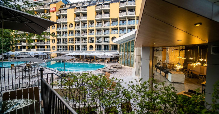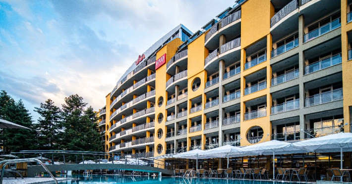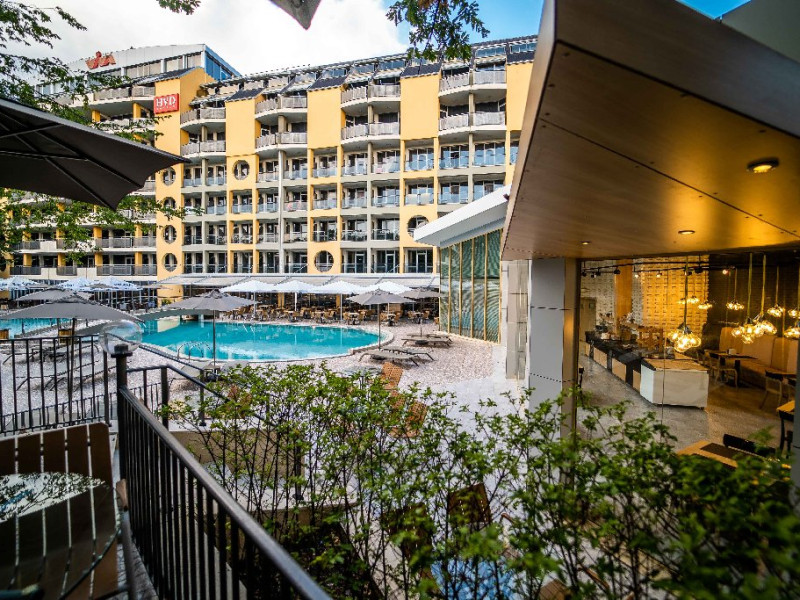 HVD Viva Club Ultra All Inclusive - Private Beach & Free Parking 4* - Nisipurile de Aur, Nota Booking 8.9 Hotelul HVD Viva Club este situat intr-o zona linistita si linistita a statiunii Nisipurile de Aur si inconjurat de peisaje magnifice. Hotelul va va uimi prin atmosfera sa confortabila, serviciile de inalta calitate si atingerea personala a fiecarui detaliu. Centrul statiunii si promenada de pe plaja ofera o varietate de restaurante, baruri si cafenele (la aproximativ 800 m de hotel). Plaja: cu nisip, aprox. 800 m. de la plaja publica. Fundul marii este plat cu acces lin. Bucurati-va de cea mai frumoasa si curata plaja de pe coasta bulgara a Marii Negre, castigatoare a premiului Blue Flag. HVD Viva Club detine o plaja privata cu un bar si un restaurant cu gustari, care ofera gratuit mancare si bauturi si umbrele de soare si sezlonguri gratuite (limitat/in functie de disponibilitate). De asemenea, este oferit un serviciu de transfer gratuit la plaja. Cazare: HVD Hotel Viva Club are opt etaje, doua lifturi. Toate camerele sunt accesibile cu liftul. Hotelul ar putea gazdui oaspetii in 260 de camere. DBL 2+0: Acest tip de camera are aproximativ 17 m2. Au 2 paturi obisnuite. Camerele sunt dotate cu - baie cu dus si uscator de par, aparat de cafea cu capsule (reumplut zilnic -inclusiv), seif (contra cost), mini bar in camera umplut zilnic gratuit, telefon direct, aer conditionat centralizat, balcon/ terasa cu masa si scaune. Cazare maxim 2 adulti. DBL SUPERIOR 2+1/2+2/3+0: Acest tip de camera are aproximativ 27 m2. Au 2 paturi obisnuite. Patul suplimentar este o canapea extensibila dubla. Camerele sunt dotate cu - baie cu dus si uscator de par, aparat de cafea cu capsule (reumplut zilnic -inclusiv), seif (contra cost), mini bar in camera umplut zilnic gratuit, telefon direct, aer conditionat centralizat, balcon/ terasa cu masa si scaune. Cazare maxima 2 adulti si 2 copii sau 3 adulti. FAM 2+1/2+2/3+0: Acest tip de camera are aproximativ 36 m2. Este o unitate formata din pat dublu si zona de zi cu canapea extensibila. Camerele sunt dotate cu - baie cu dus si WC separat, uscator de par, aparat de cafea cu capsule (reumplut zilnic - inclusiv), seif (contra cost), minibar in camera reumplut zilnic, telefon direct, aer centralizat. climatizare, balcon/terasa cu masa si scaune. Cazare minim 2 adulti si 2 copii. Cazare maxim 3 adulti. APP 2+2/3+1/4+0: Acest tip sau camera are aproximativ 36 m2. Exista doua camere cu usa comunicanta - cu 4 paturi obisnuite. Camera este dotata cu: aparat de cafea cu capsule (reumplut zilnic - inclusiv), mini bar in camera umplut zilnic gratuit, telefon, SAT TV, aer conditionat central, seif (contra cost), 2 bai cu dus si WC , uscator de par, dulap, mocheta, balcon/terasa cu scaune si masa. Cazare maxim 3 adulti si 1 copil sau 4 adulti. *Este permisa gazduirea unui copil cu varsta de pana la 1,99 ani. peste capacitatea maxima a camerei, cu exceptia camerei duble standard. *Patutul este oferit gratuit la cerere prealabila. Nu este posibil in camera dubla standard. *Nu este permisa cazarea cu animale de companie. Zonele comune ale hotelului - hol, restaurant, piscina sunt accesibile persoanelor cu dizabilitati. Exista 2 camere (DBL Superior 2+1) adaptate pentru oaspetii cu dizabilitati (la cerere). Despre hotel: restaurant tip bufet principal, doua restaurante a la carte - italiana si gratar, Lobby Bar, Pool Bar, Snack bar si Barb-B-Q si snack bar pe plaja. Sport si SPA: Piscina exterioara si una separata pentru copii, fitness, zona de relaxare - sauna, jacuzzi. Tenis de masa, biliard, volei si minifotbal, polo pe apa, gimnastica acvatica, aerobic. Ultra All INCLUSIVE la hotelul HVD VIVA CLUB **** pentru sezonul de vara 2025 INCLUDE: * Check-in dupa - ora 15:00 *Check-out pana la ora 11:00. *Mesele incep cu pranzul in ziua sosirii si se termina cu micul dejun in ziua plecarii.