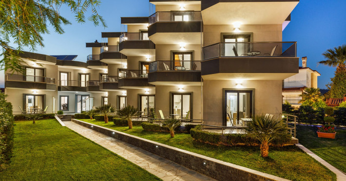 Ilis Villas is a complex of deluxe apartments located in Nikiti Sithonia, Halkidiki, just 200 m from a sandy beach, cafes, restaurants, and at a 10-minute walk distance from the center of the village. A perfect choice for both families with children and couples. Ilis Villas is home to 10 spacious deluxe Studios, Suites and Family Suites all equipped with kitchenettes.