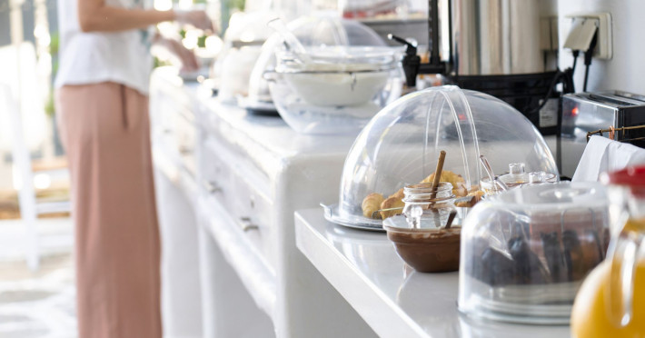 Our guests can start their day with a rich and delightful breakfast buffet served from 8:30 to 11:00 in our peaceful patio, where they can also enjoy a glass of wine, beer or cocktail from our bar while reading a book or socialising with their friends.