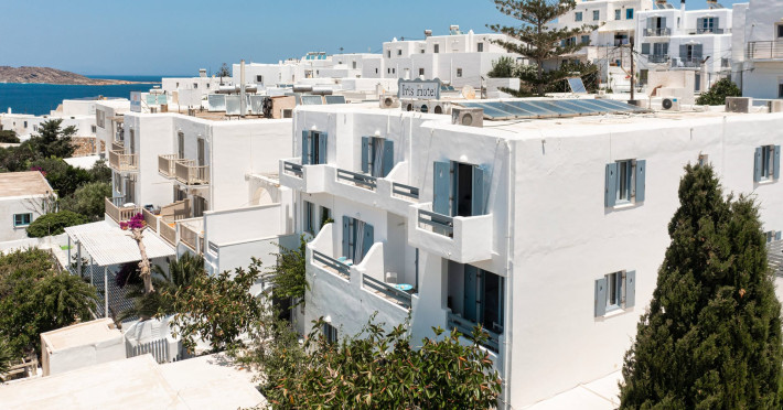 Iris hotel is a friendly and stylish 3 star hotel in Naoussa Paros. Its privileged position allows guests to access in just 2 minutes by foot Pepper beach and in 5 minutes from center of the cosmopolitan Naousa where the fish taverns, the picturesque streets, the traditional shops and the nightlife will enchant you as it is one of the most popular destinations of Cyclades.