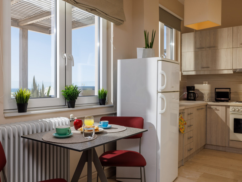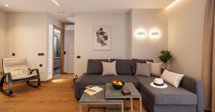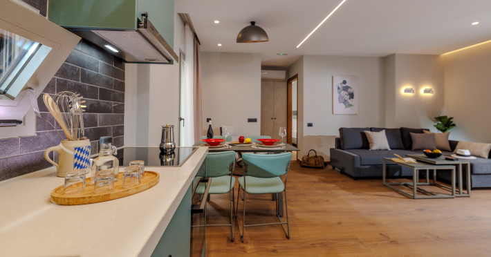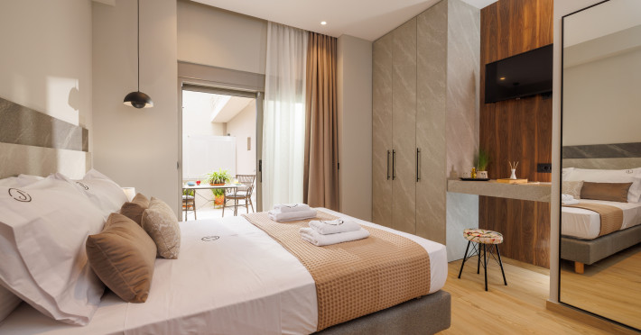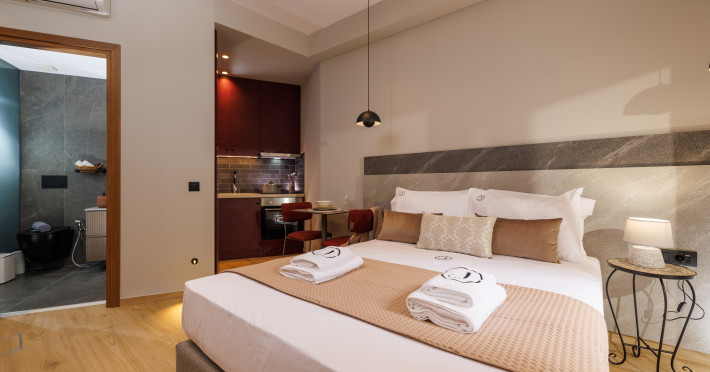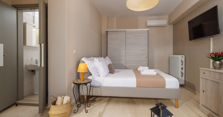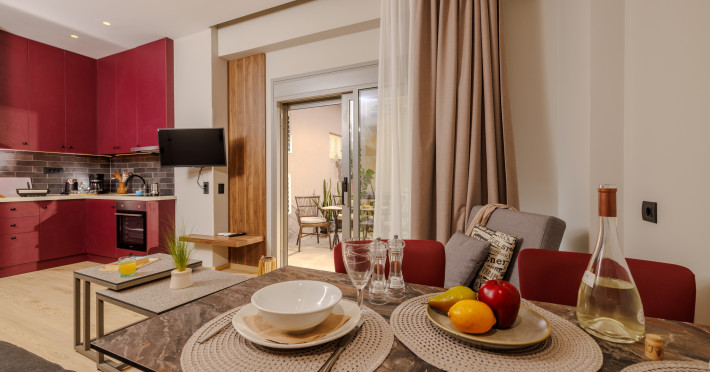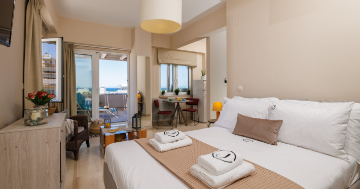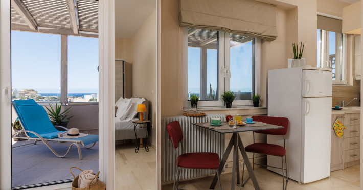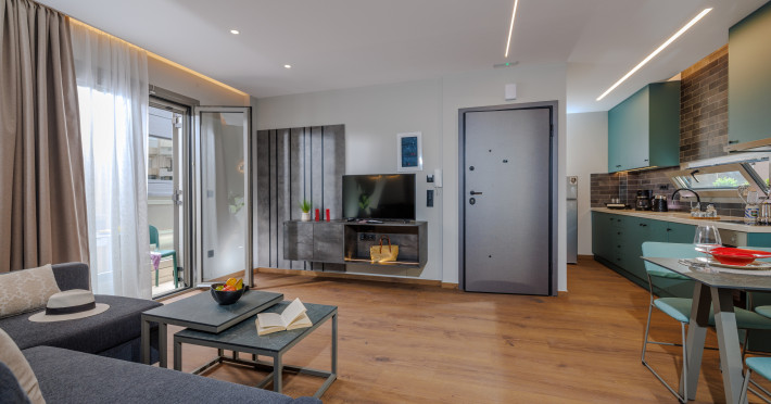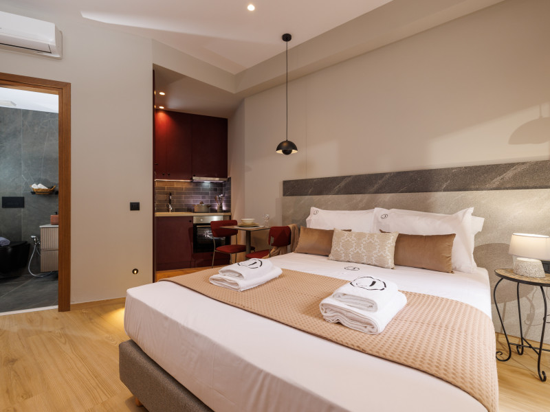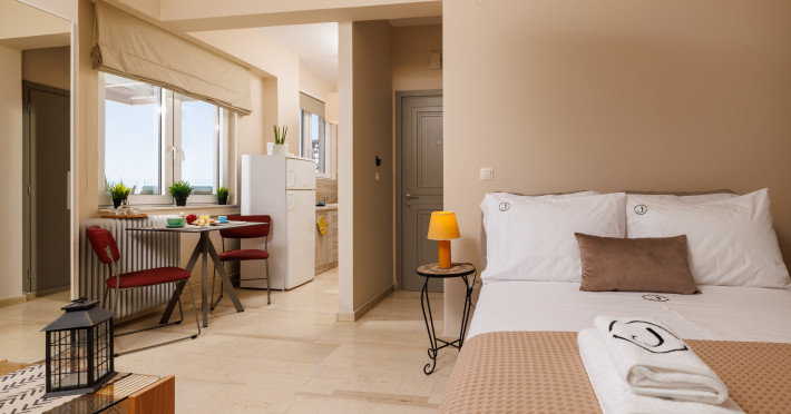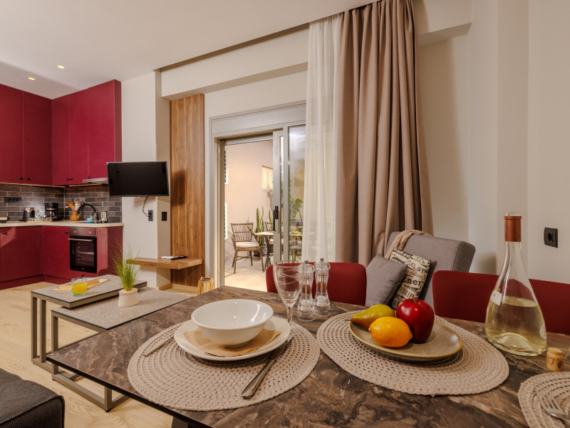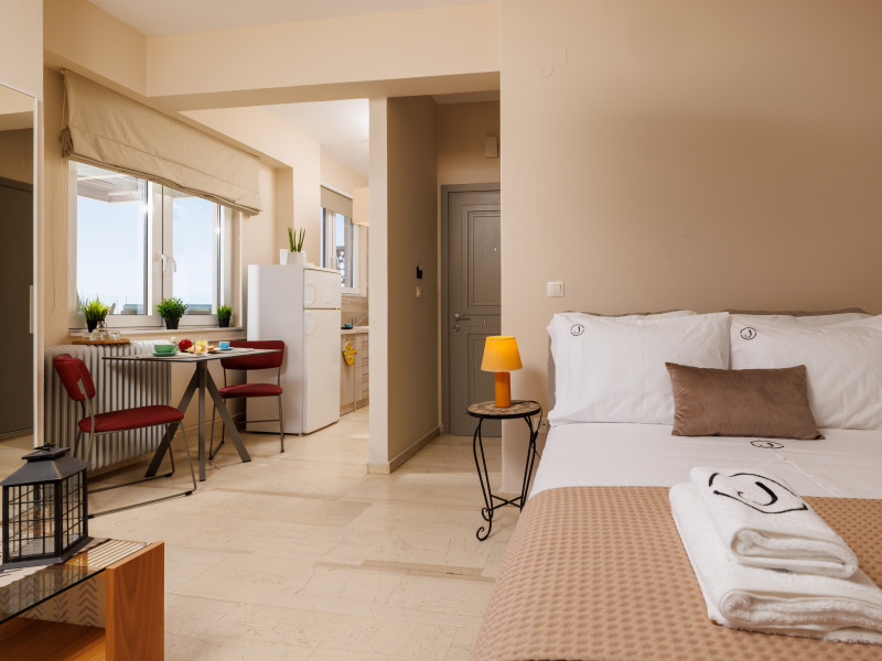 Jolly Suites in Heraklion town offers apartment-style accommodations with free WiFi, air-conditioning, and private bathrooms. Each unit includes a fully equipped kitchen, washing machine, and dining area. Guests benefit from private check-in and check-out, a paid shuttle service, elevator, concierge, outdoor seating, family rooms. Additional amenities include sea views, terrace, balcony, sofa bed, and soundproofing.