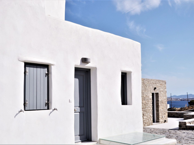 Krotiri View complex is located at the surrounding quiet hillside overlooking the gulf of Parikia which is the capital of the island . The Greek Cyclades are the brand of Summer holiday in Greece with the blue sky , white and stone buildings and unique beaches. Feeling the contrast between warmth and cool, sunlight and shadow with its quality finishes, fixtures and fittings, to provide a memorable experience of airy, laid back quality complemented by stunning sunrise and sunset sea views..