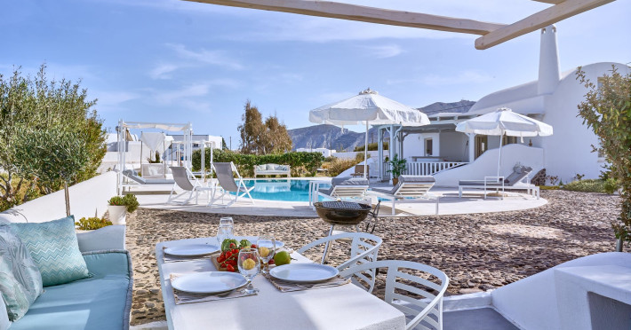 Looking for a private accommodation heaven for your summer escape in Santorini? How about an absolutely private villa with spacious indoors and sophisticated outdoors to enjoy precious time with your loved ones? Just a few steps from the beach and in the heart of a tranquil, beautiful area of Santorini,