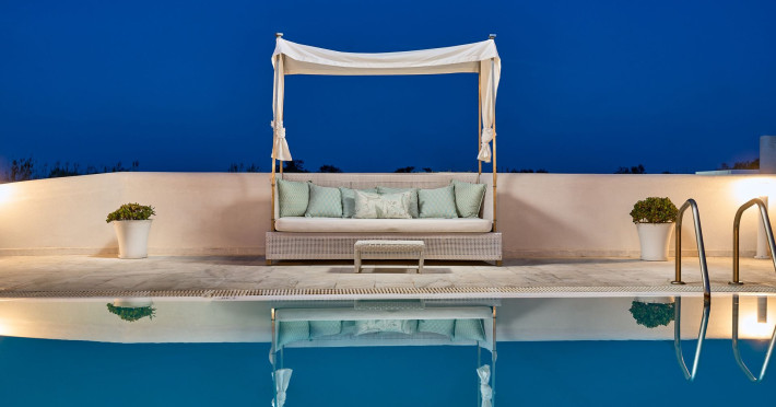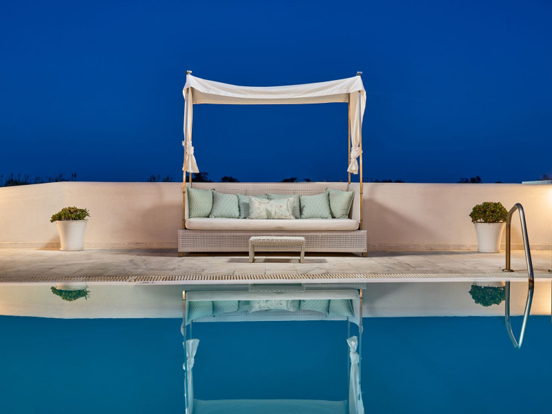 The secluded, enclosed coastal-view gardens and large outdoor pool (50m2), will prove enormously popular amongst all generations, especially with the mesmeric views and stunning seascapes as a backdrop. Lay out al fresco lunches and make like the Greeks, grazing on cold meats and olives between dips, before reclining to watch the dramatic Santorini sunset unfold with a G&T from the pool bar, on hand by laying at the sun loungers. Little ones are sure to have hours of fun with their own ‘Outdoor Playground’, and the sensory swimming pool to splash about in until well past bedtime.