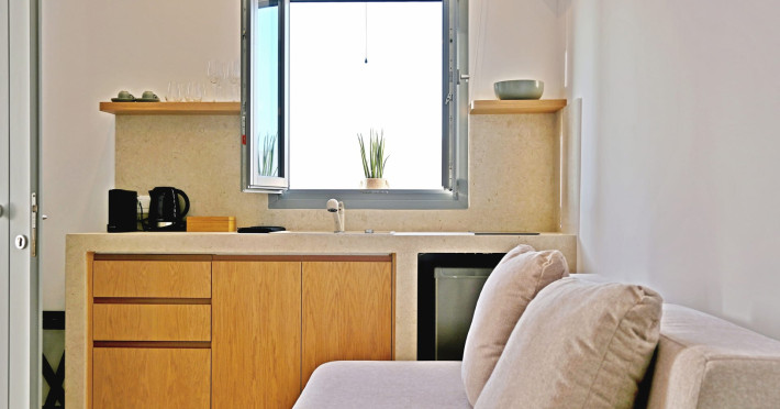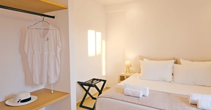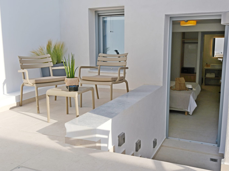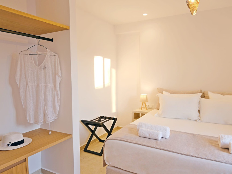 Nestled in the heart of the Paros island, this brand new small hotel, embodies the perfect blend of modern luxury and traditional Cycladic charm. Just a sort walk from the Agioi Anargyroi beach, the hotel’s strategic location, only two minutes away from the vibrant center of Naoussa village yet peaceful, places visitors within reach of a plethora of charming bars, delightful restaurants, and unique shops.