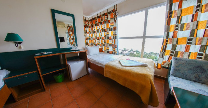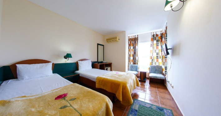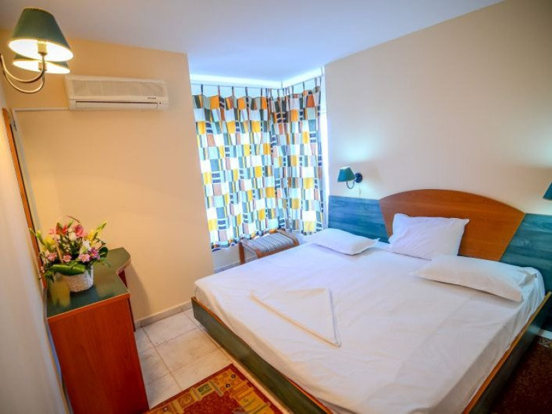 HOTEL MAJESTIC este situat in Olimp, la 150 m de plaja si detine 219 camere, dintre care 205 duble si 14 apartamente. Va informam ca incepand cu sezonul 2021 se va incasa la check-in taxa de statiune, in valoare de 5 lei/persoana/zi, conform HCL 283/23.12.2020. Vor fi taxate toate persoanele cu varsta de 18 ani impliniti. Dotari si servicii Hotel Majestic Olimp este printre primele hoteluri din statiune, pozitionat in zona centrala, la doua minute de plaja, oferind servicii si facilitati superioare. Datorita dispunerii perpendiculare pe linia tarmului, oaspetii nostri se pot bucura de o minunata priveliste catre Marea Neagra. Incepand cu anul 2002, cand hotelul a fost preluat de catre grupul Phoenicia Hotels, acesta a devenit punctul de referinta al vacantelor de vara petrecute intr-o atmosfera familiala. Hotelul detine restaurant, parcare, sala conferinta 80 locuri, loc de joaca copii, internet in lobby, terasa, gradina, piscina in aer liber, sauna, sala fitness, parcare proprie, internet. Nu se accepta animale de companie. Hotelul Majestic Olimp dispune de doua piscine pentru oaspetii sai: Piscina pentru adulti: este incalzita si are o lungime de 15 metri, o latime de 10 metri si o adancime variabila intre 1,50 si 2,50 metri. Piscina pentru copii: este de asemenea incalzita si are o lungime de 3 metri, o latime de 2 metri si o adancime de 0,70 metri. Servicii incluse: - program de seara - muzica live pentru adulti; - acces gratuit la cele 2 locuri de joaca situate atat in interiorul hotelului, cat si in exterior; - acces gratuit la piscinele complexului cu sezlong gratuit in limita disponibilului; - piscina pentru copii este incalzita pe intreg sezonul; - umbrele/ hamac/ balansoar, gratuite la piscina in limita disponibilului; - acces gratuit internet in complex doar in loby-bar si receptie; - parcare auto gratuita in limita locurilor disponibile; - pastrarea obiectelor de valoare/ depozitare si pastrarea bagajelor/ patut bebelus la cerere/ comanda taxi; - jocuri divertisment (sah, table, rummy, carti de joc, tenis de masa); - stand de presa nationala si internationala la receptie, informatii turistice, cultural-sportive, adrese; - convorbiri interne si internationale; servicii postale, servicii fax; - sala de conferinta. Servicii masa - restaurant propriu 3* Mic dejun bufet suedez (07:30 - 10:00) include: diverse preparate si bauturi: apa, suc, ceai, lapte si cafea; Demipenisune cu pranz bufet suedez (12:30 - 14:30) cu bauturi alcoolice si nonalcoolice incluse pe durata mesei; Demipensiune cu cina bufet suedez (18:00 - 20:30) cu bauturi alcoolice si si nonalcoolice incluse pe durata mesei; Cine tematice: Luni - seara Dobrogeana, Marti - Seara Asiatica, Miercuri - Seara Orientala, Vineri - Seara Greceasca, Sambata - Seara Romaneasca, Duminica - BBQ. La suplimentul all inclusive bauturile sunt incluse in intervalul 11:00 - 20:30. Dotari camere Camera dubla (18 mp) Capacitate maxima: 2 adulti + 1 COPIL, 0- 7.99 ani; In functie de disponibilitatea hotelului, se va aloca o camera cu pat matrimonial sau doua paturi (twin). Camera single (18 mp) Capacitatea maxima: 1 adult + 1 copil 0- 7.99 ani. Diferenta dintre camera dubla si cea single este doar de masa, camera fiind aceeasi. Apartament (36 mp) Capacitate: 2 adulti sau 2 adulti + 2 copii 0- 13.99 ani sau 3 adulti si un copil 0-7.99 ani, al doilea copil plateste micul dejun, al treilea adult plateste 50% dintr-un loc de cazare si micul dejun. Este compus din 2 camere, un dormitor cu pat matrimonial si un living spatios cu canapea extensibila in care pot dormi 2 copii mai mici de 0 - 13.99 ani sau un adult si un copil. Apartamentul dispune de frigider. Toate apartamentele sunt situate cate unul pe fiecare etaj si cele de la etajul 3 in sus au vedere partial spre mare. Toate camerele ofera aer conditionat, TV, pardoseala cu gresie, racitor tip minibar, baie dotata cu cadita de dus, cada in apartamente, prosoape, cosmetice personalizate in baie, sistem acces pe baza de cartela magnetica sau cheie.
